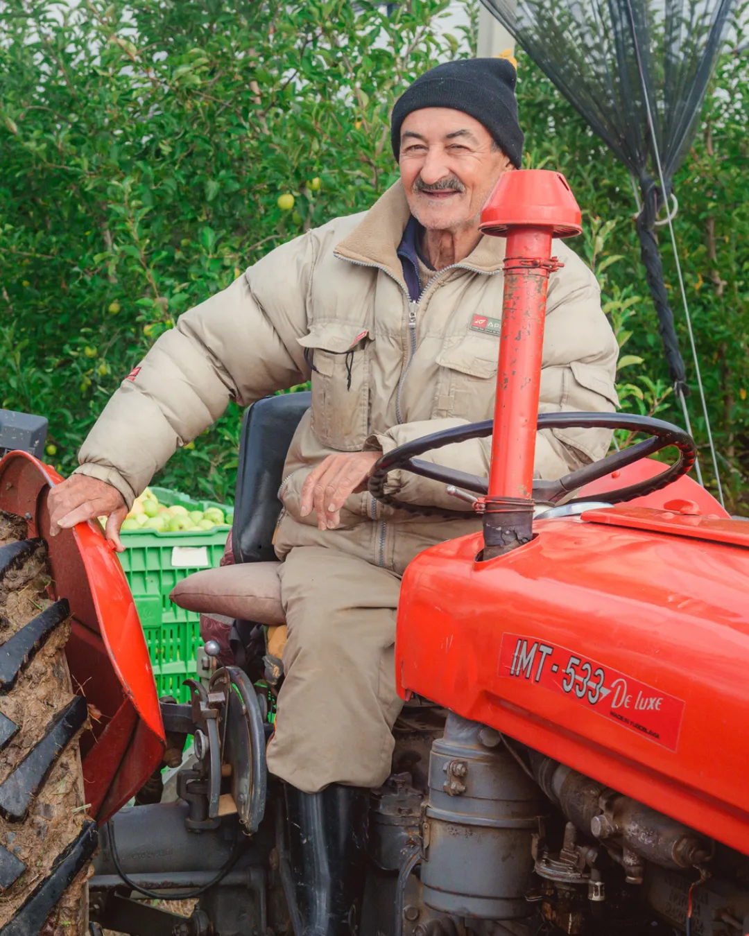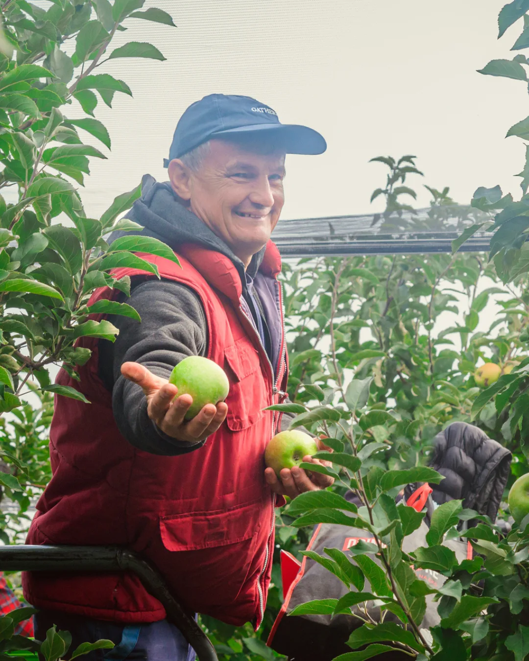 В начале октября здесь идёт активный сбор. Снимают яблоки в садах местные жители и делают это вручную, складывают в большие ящики-вагончики, а потом «паровозик» с плодами едет на фабрику.