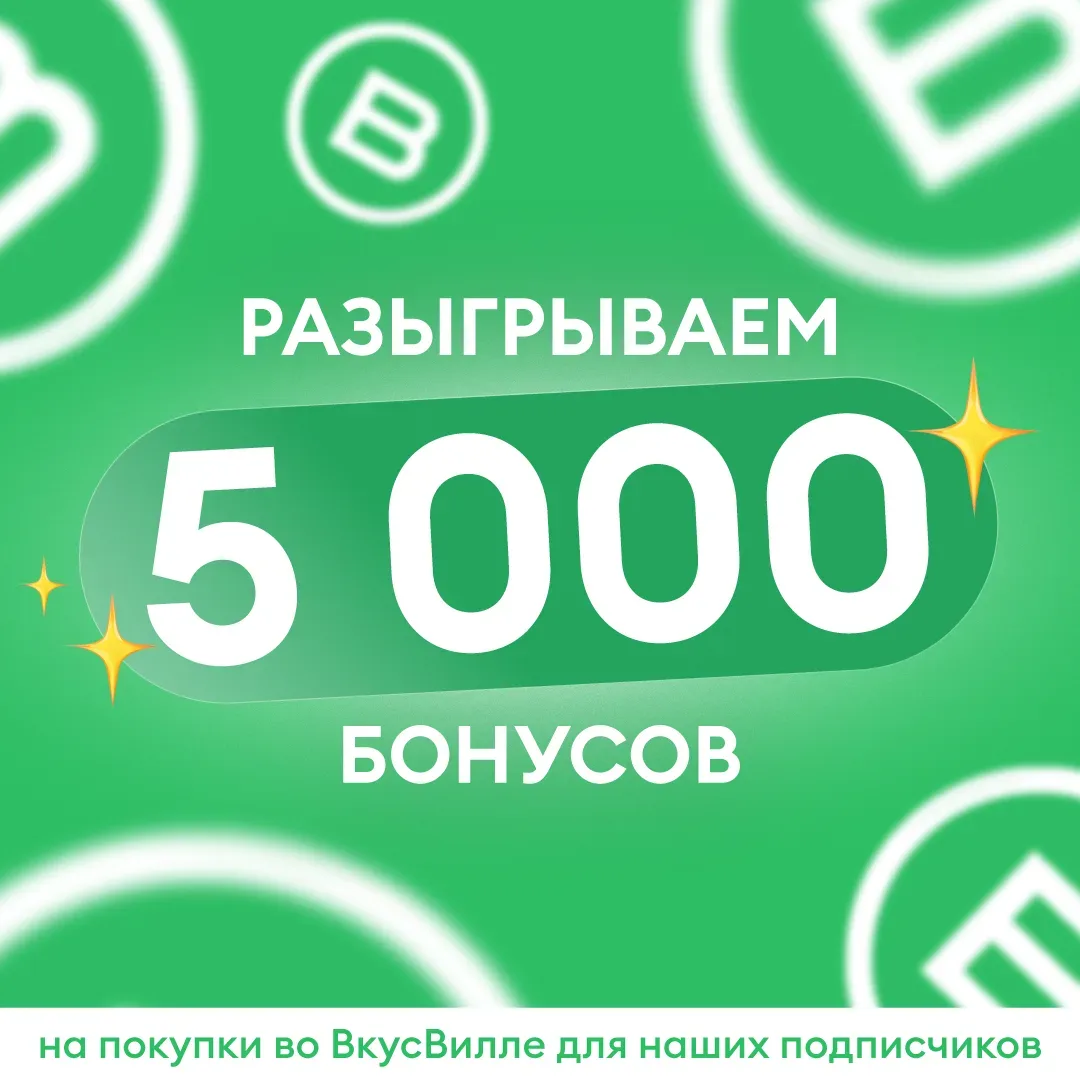Среди всех подписчиков канала 11 марта мы случайным образом выберем 5 победителей и подарим каждому по 1000 бонусов на покупки во ВкусВилле.