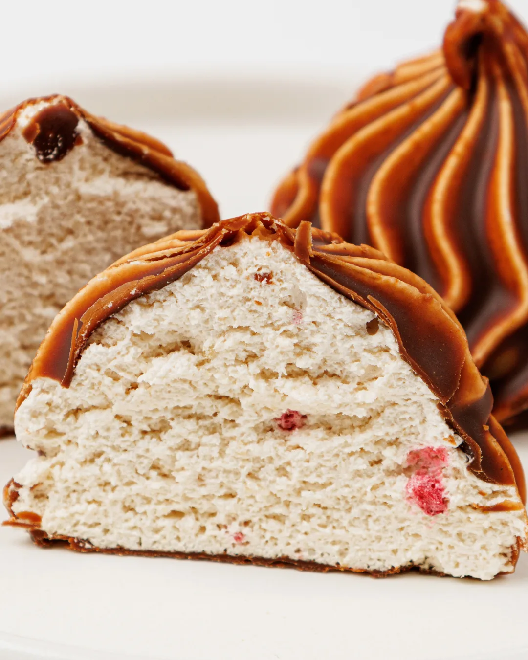 Нежный бисквит и воздушный ягодный мусс с лёгкой кислинкой.