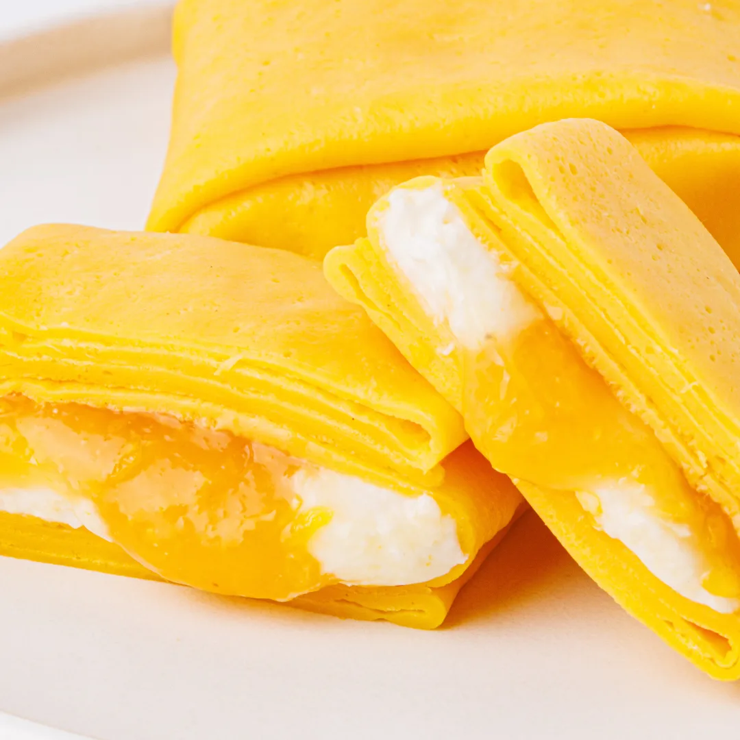 Тонкие блинчики с яркой цитрусовой начинкой и нежным сырным кремом. Если слегка подогреть, мандариновый вкус раскрывается ещё ярче — очень уютный десерт.