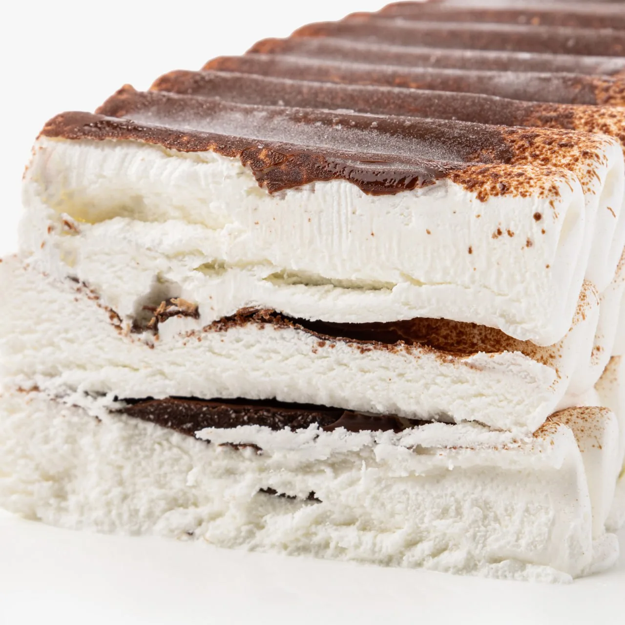 🍦 Пломбир с прослойками шоколада «Суфле» порадует карамельной сладостью сгущённого молока и ярким оттенком какао.