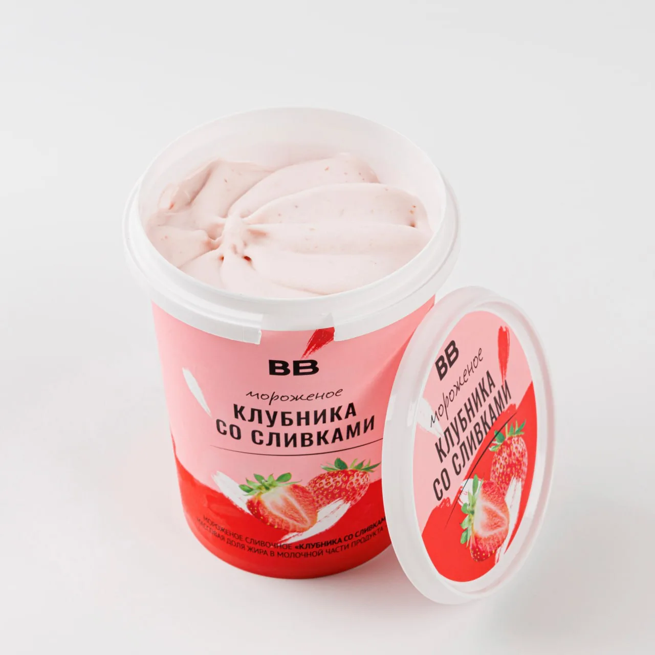 🍓 Мороженое «Клубника со сливками» на основе цельного молока и сливок напомнит о том, что лето уже рядом: для свежего безупречно-ягодного вкуса мы щедро добавляем в мороженое пюре спелой клубники.