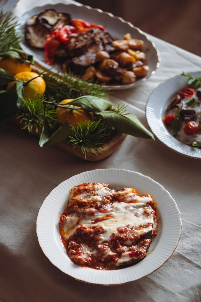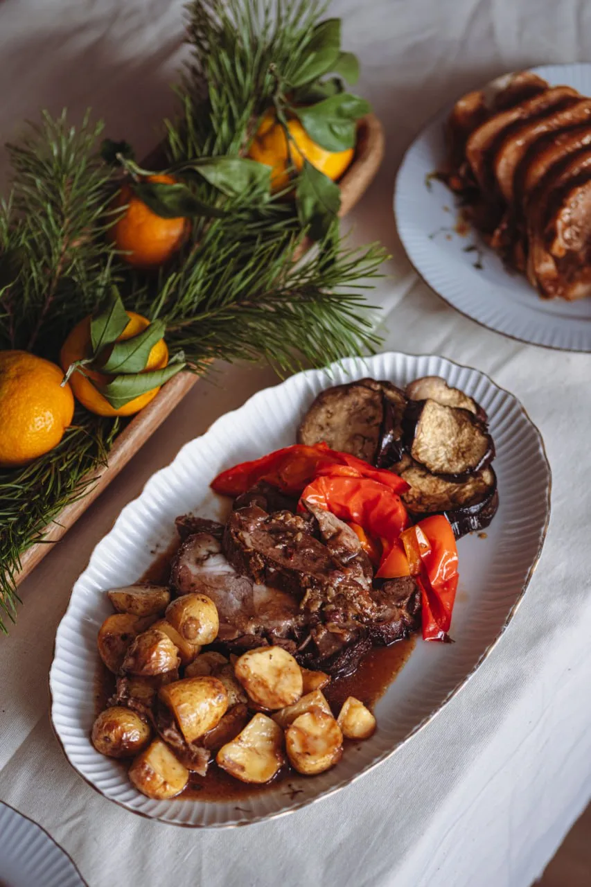 Рулька в глазури по-баварски. Курица в сливочно-грибном соусе «Альфредо». Баранина с овощами и брусничным соусом. Форель с картофелем и цукини. Баклажаны «Пармиджано».
