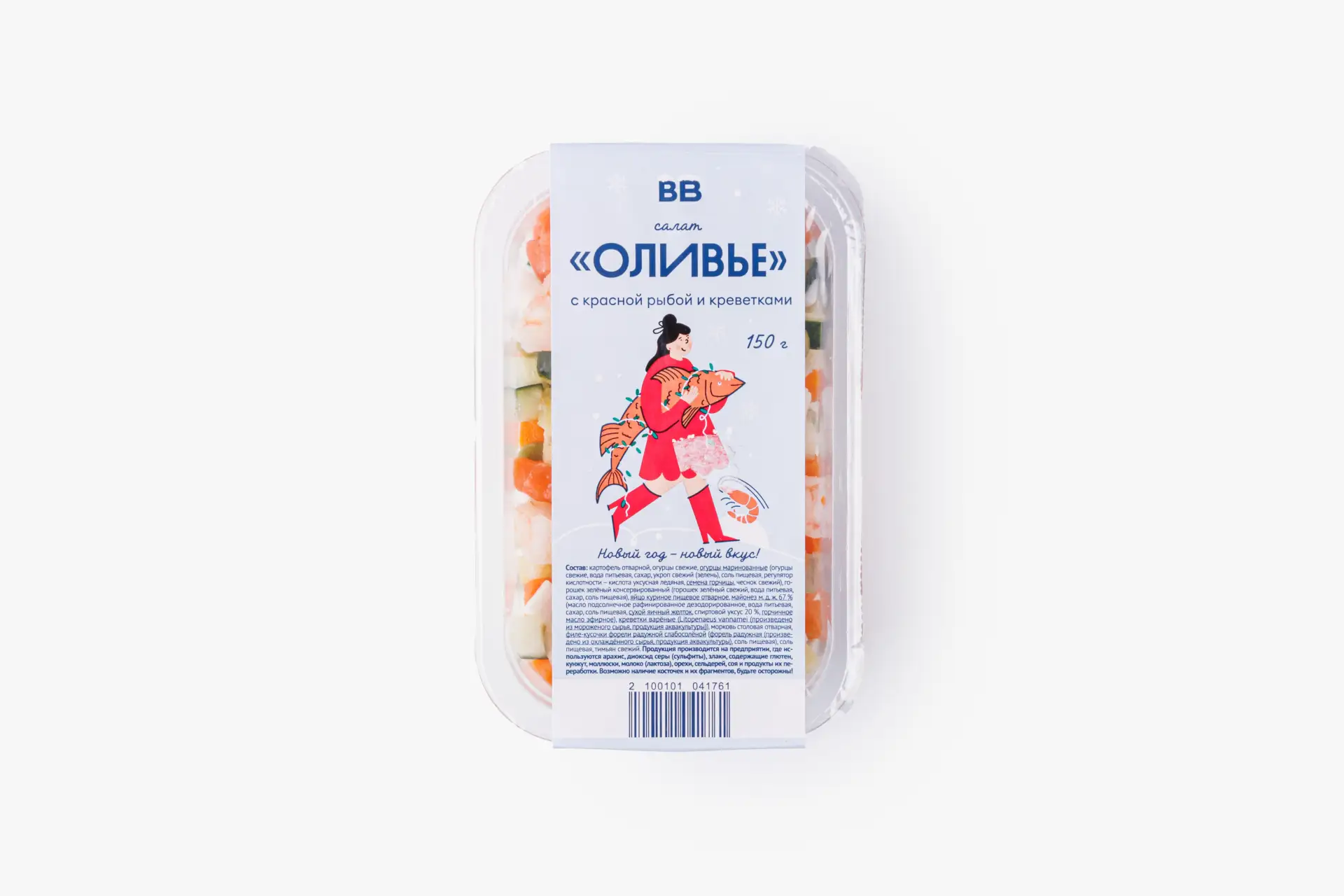 Классический вкус стал тоньше и праздничнее. К нежной основе из картофеля, огурцов, яйца и горошка мы добавили слабосолёную красную рыбу и мягкие креветки — и салат сразу зазвучал по-новому. Получилось ярко, свежо и чуть более изысканно, чем привычная классика.