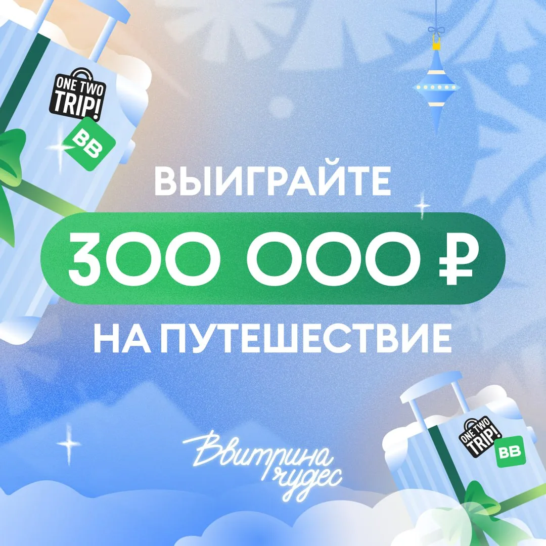 ✨ И даже больше! Вы можете стать участником розыгрыша супер-приза: сертификата на 300 000 рублей, которое можно потратить на путешествие мечты от OneTwoTrip!