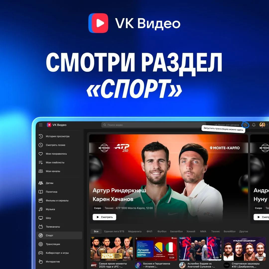 А если хочется смотреть не только кино, но и настоящий спорт — заглядывайте в специальный раздел в VK Видео: там собраны матчи, обзоры и аналитика!