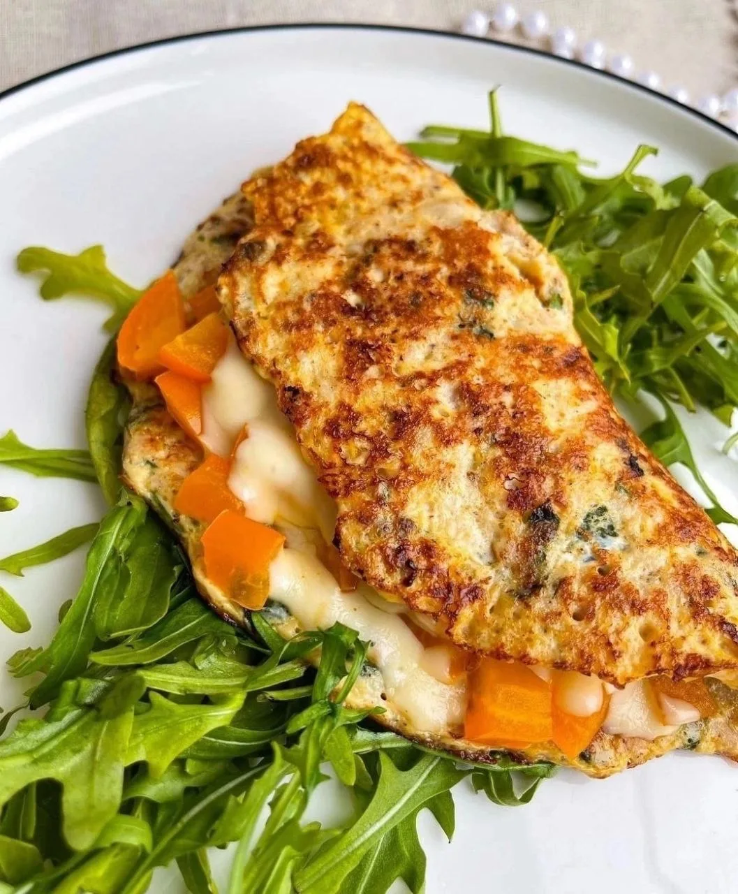 ✔️Творожный омлет из 2х белков и 100г творога. Можно добавить зеленую фасоль, зелень и специи.