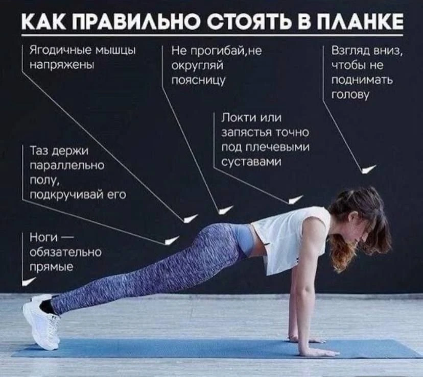 ❗️Планку не рекомендуется делать беременным, людям с повышенным артериальным давлением, защемлениями нервов, межпозвоночными грыжами, а также тем кто имеет начальную или больше степень ожирения.