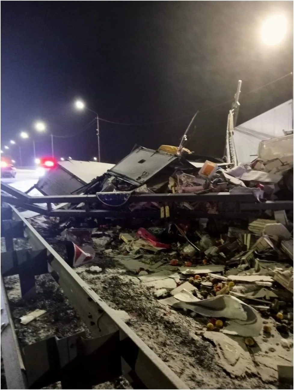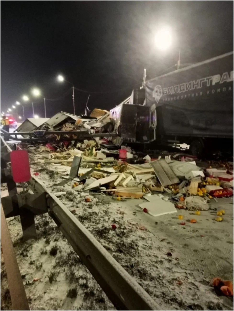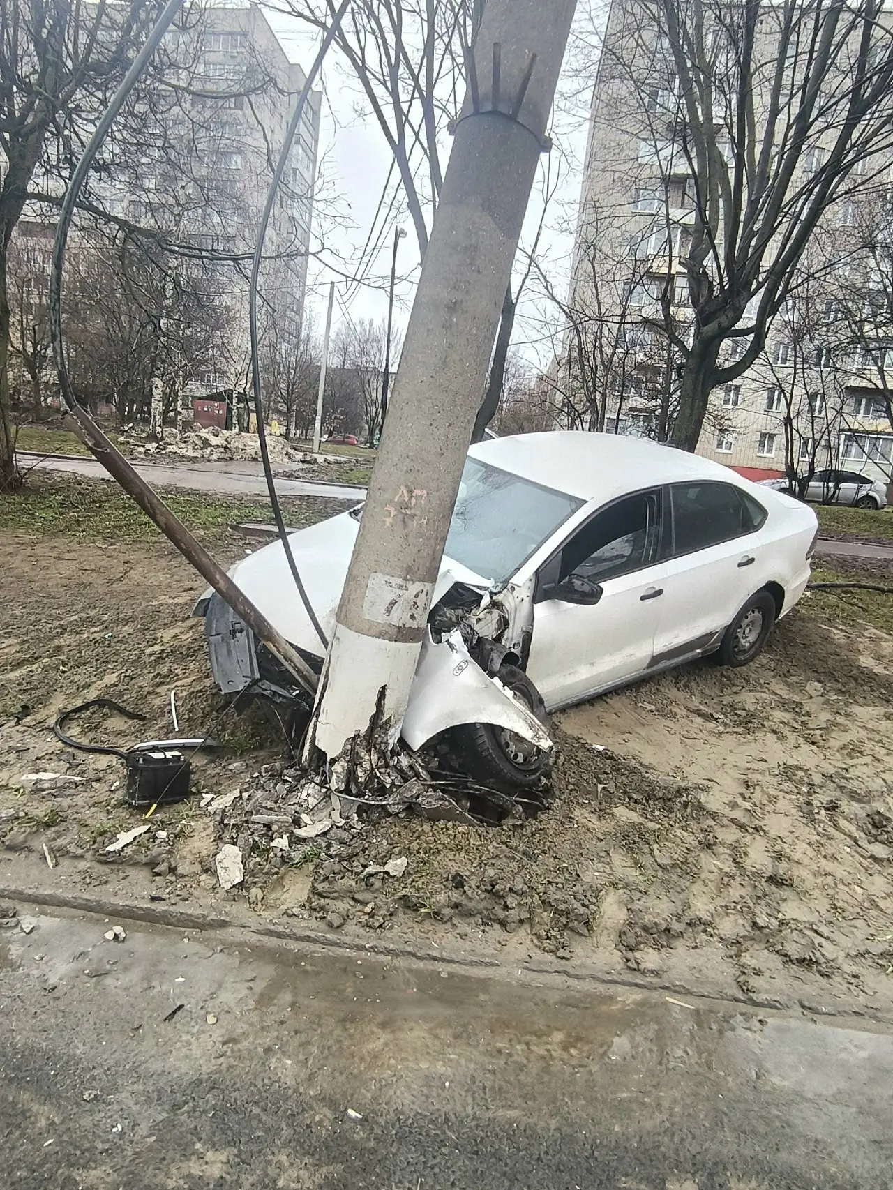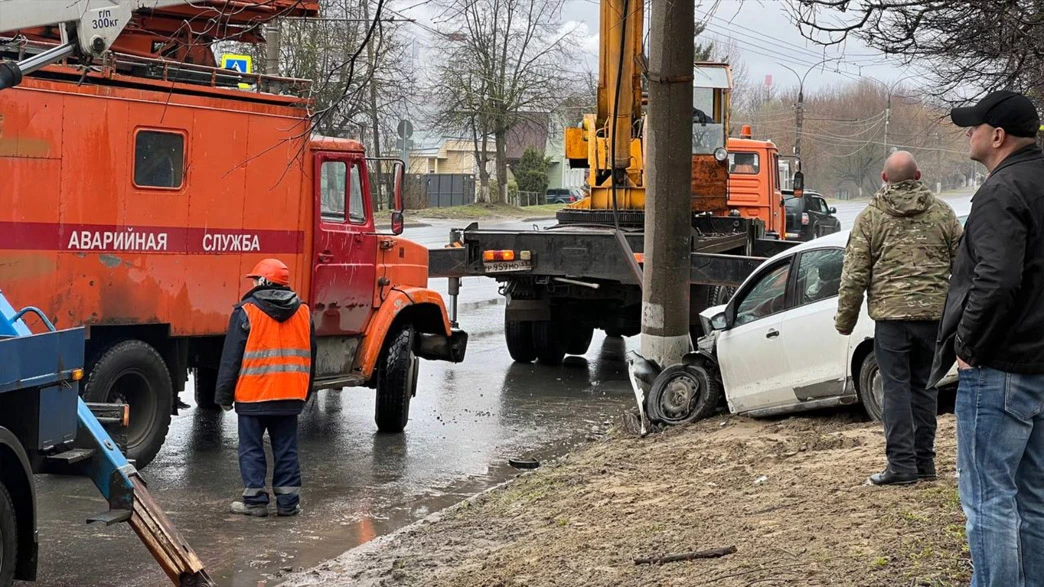 На Добросельской машина влетела в столб, он сейчас держится только на кранах.