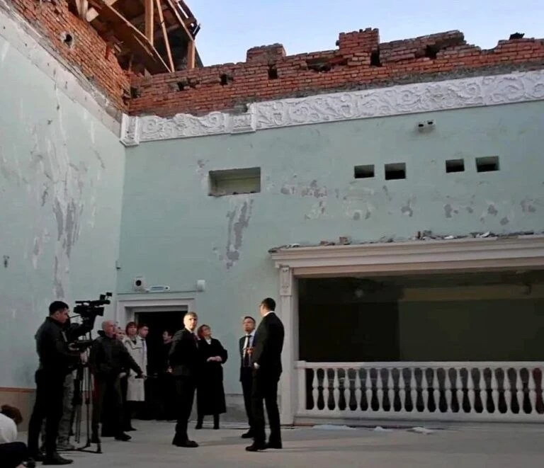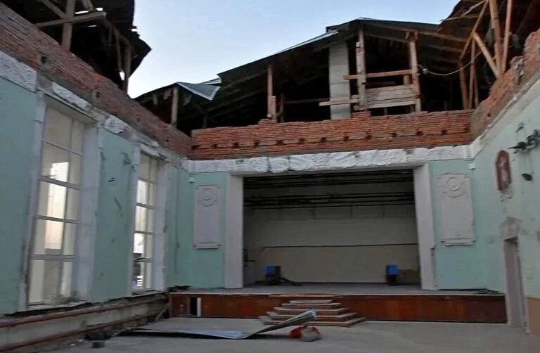 Губернатор осмотрел разрушенную школу искусств, где в феврале обрушилась крыша. Зрительный зал теперь под открытым небом.