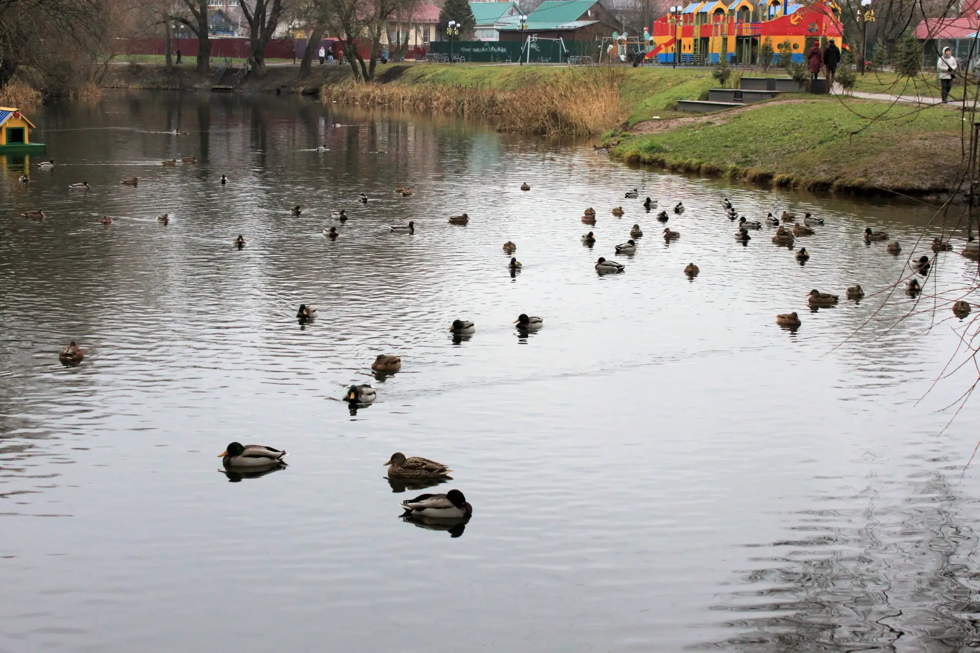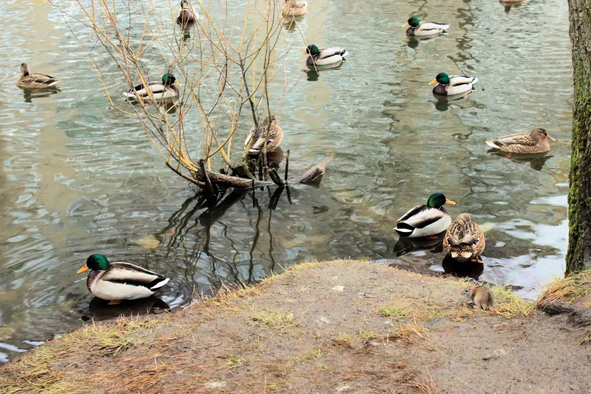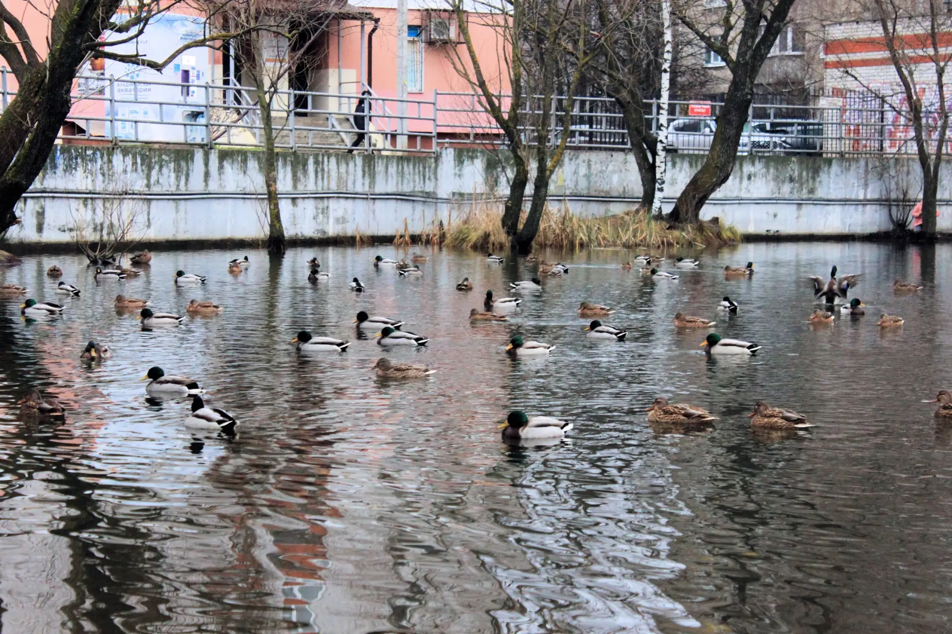 В декабре на Красносельском пруду утки устроили «осенние свадьбы».