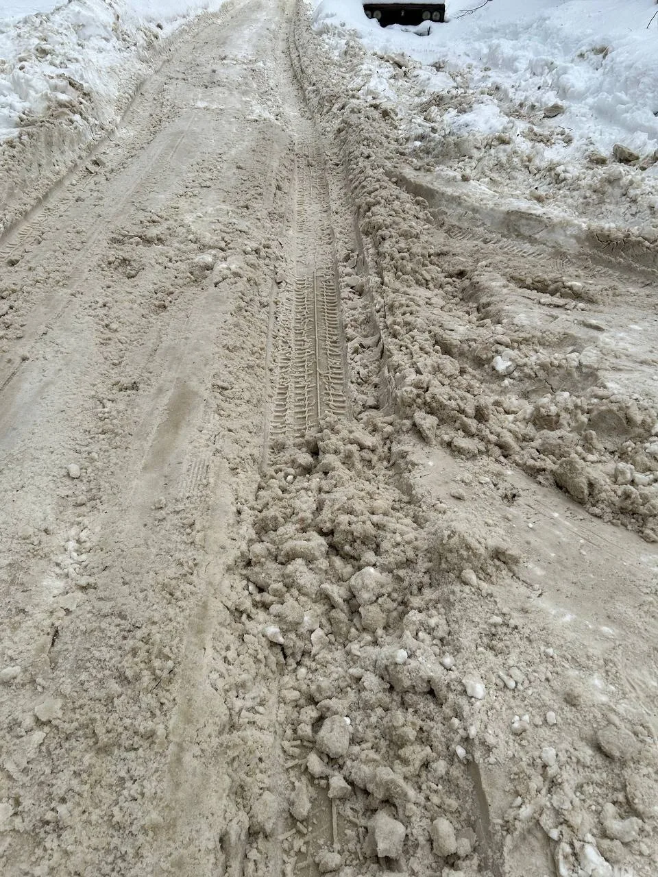 Всю зиму просим прочистить единственную дорогу - выезд от 10 МКД и частных домов. Дорога одна колея. Ни в право, ни в лево не свернуть. Легковые машины днищем шлифуют середину колеи.