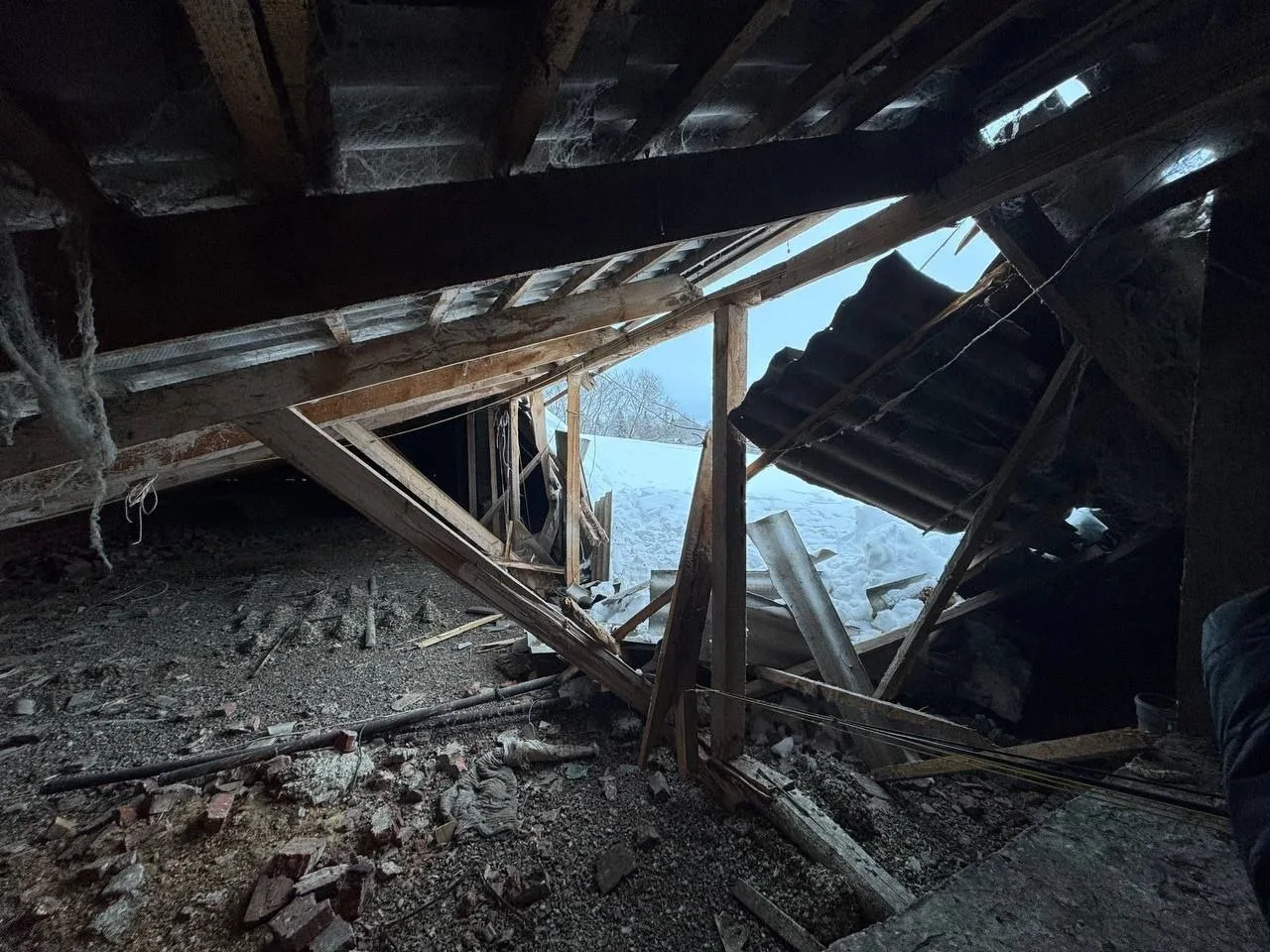 Ночью 15 февраля из-за схода снега с крыши были оборваны электропровода, повреждены два дымохода и ввод газоснабжения. В результате 39 жильцов, включая 12 детей, остались без отопления, газа и электричества.
