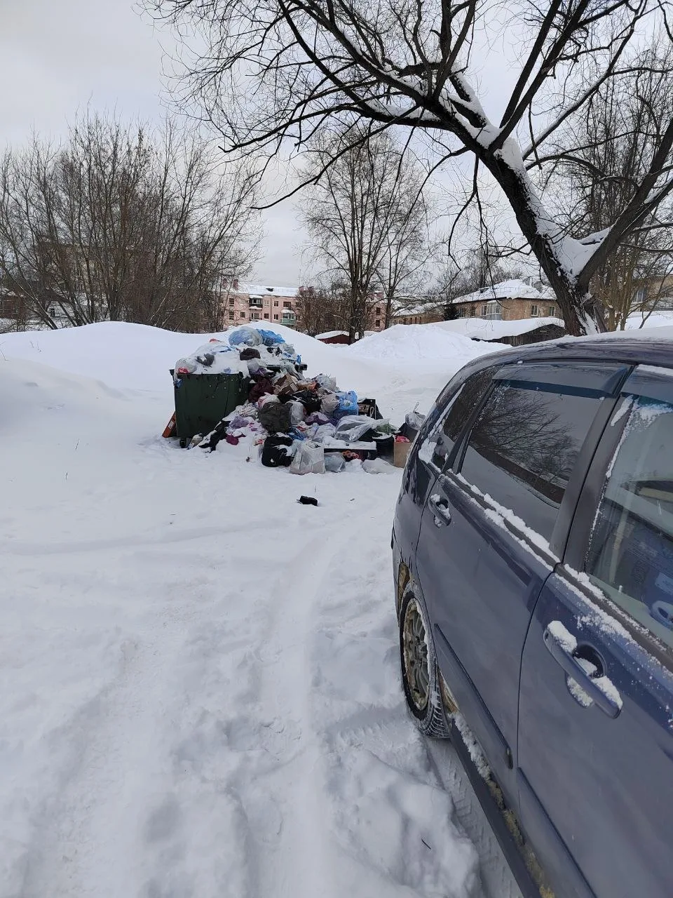 ЦУГД не чистят подъезд к контейнерной площадке, из-за этого Биотехнологии не вывозят мусор.