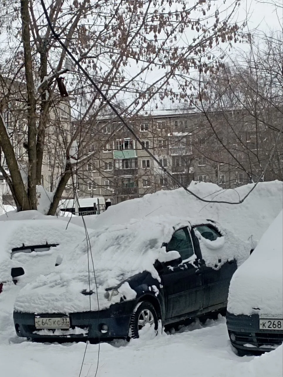 Мкр Юрьевец Строительный проезд 11. Крышу пора чистить, снег тоже убирать в дворе. УК Жилищная компания. Жилинспекция города Владимира отвечает, что территория в удовлетворительном состоянии. А сегодня опять горы снега.