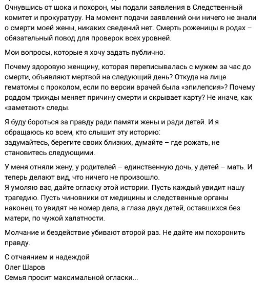 «Обреченная на смерть в роддоме»: крик души мужа погибшей пациентки
