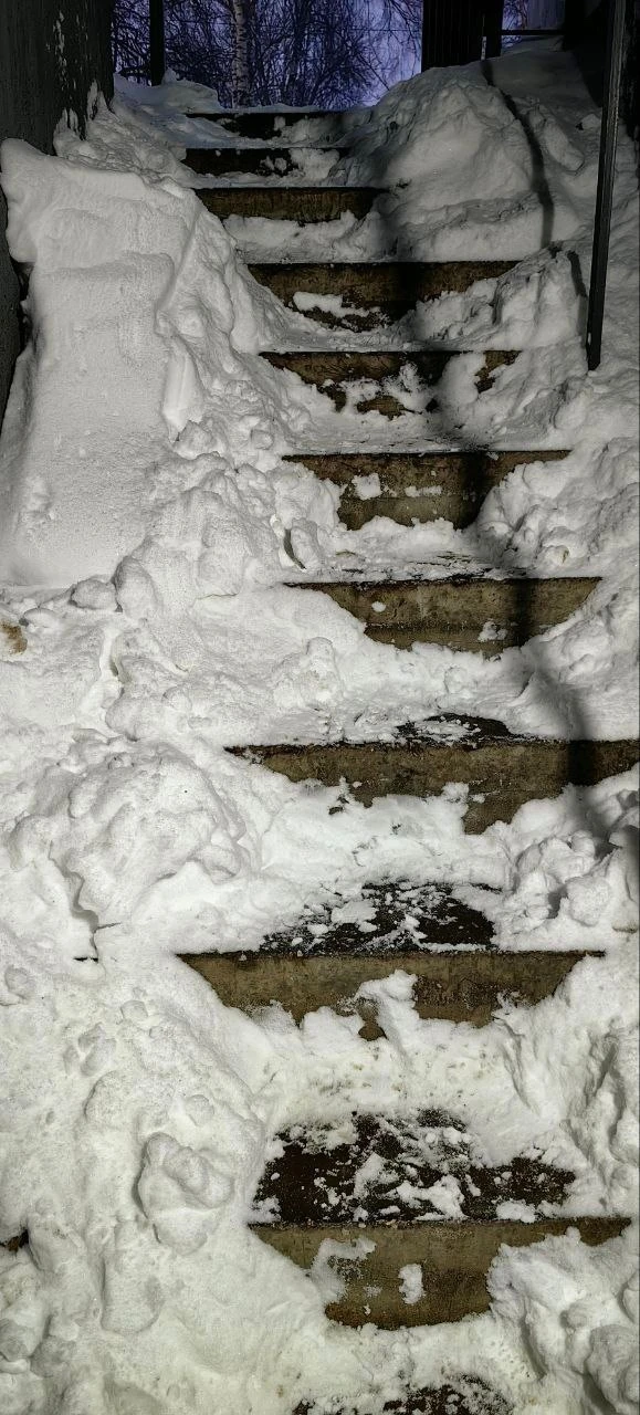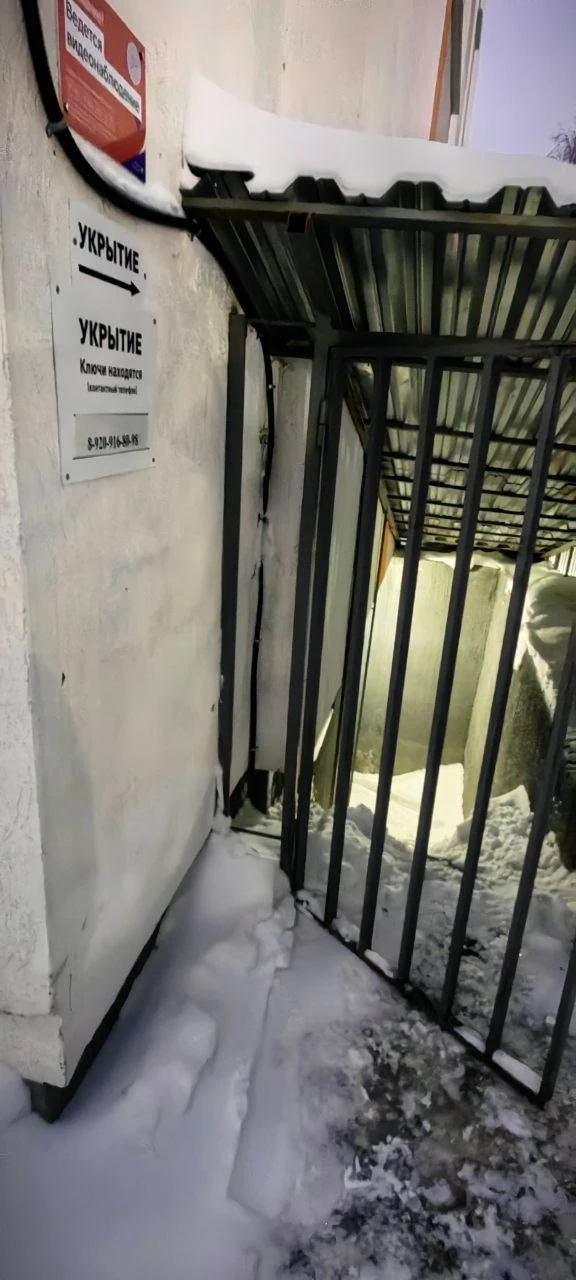 Вход в подвал, он же убежище, Фейгина 22, весь завален снегом, управляющая компания не чистит.