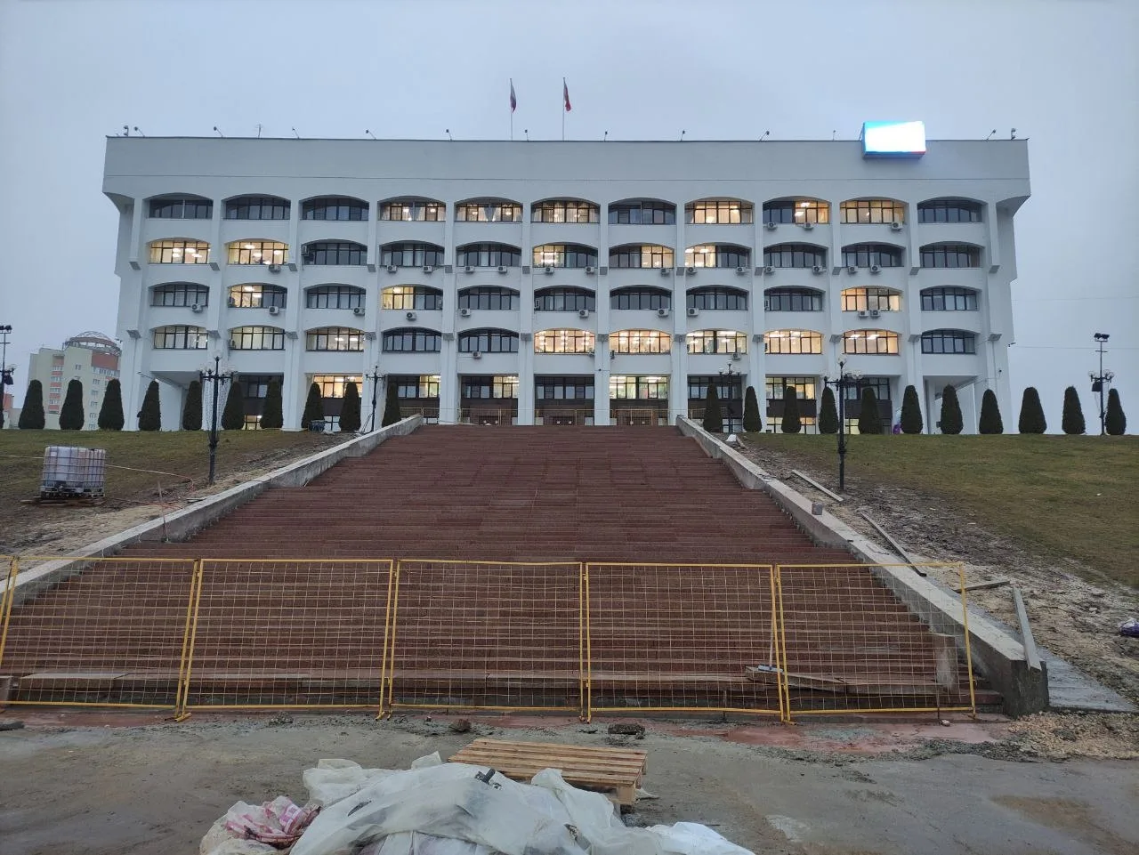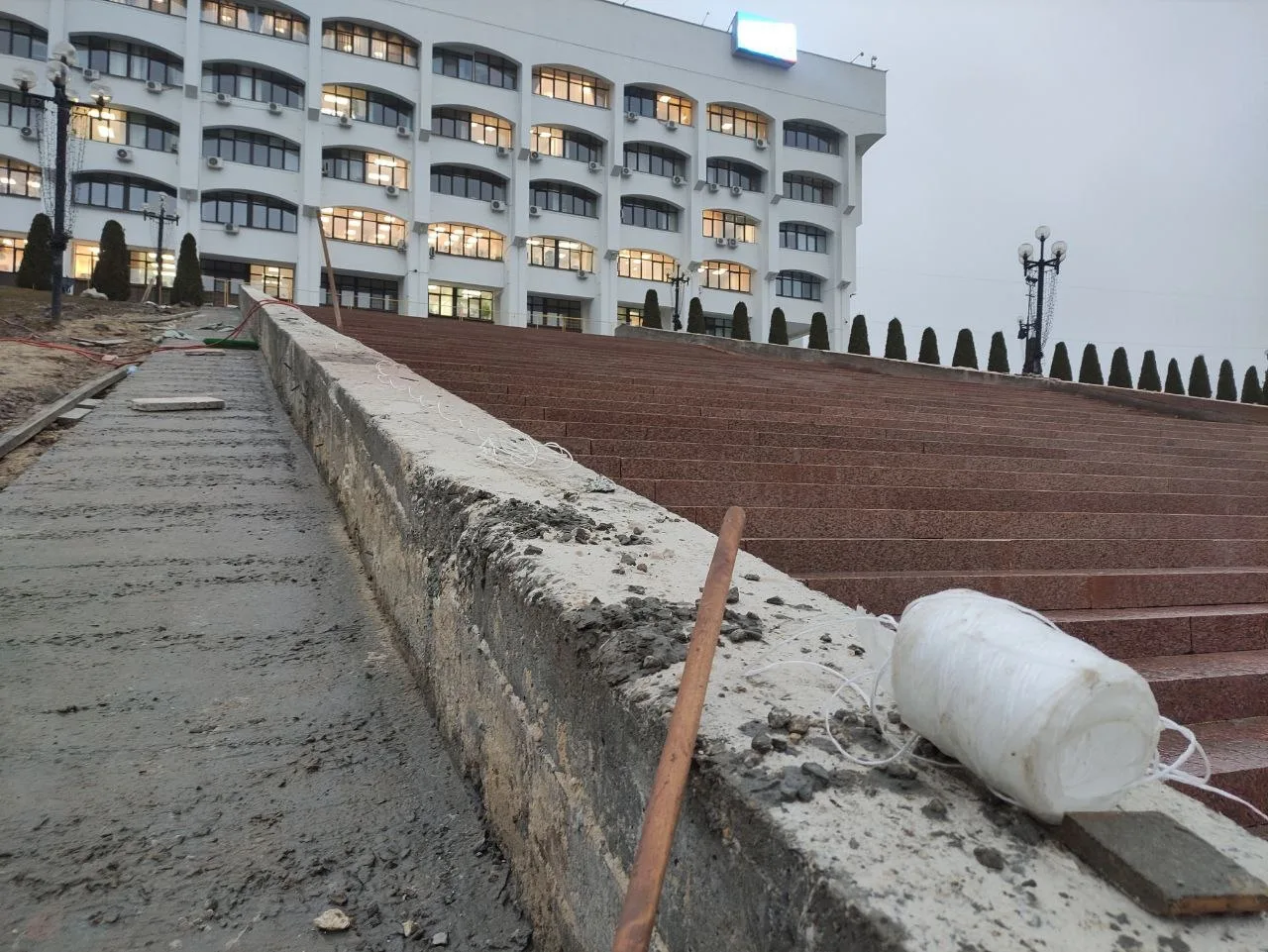 Сроки ремонта лестницы перед зданием правительства Владимирской области снова перенесены — теперь работы должны завершить к 16 января 2026 года. Контракт на 17,7 млн рублей был заключен с костромской компанией «Лидер Строй».