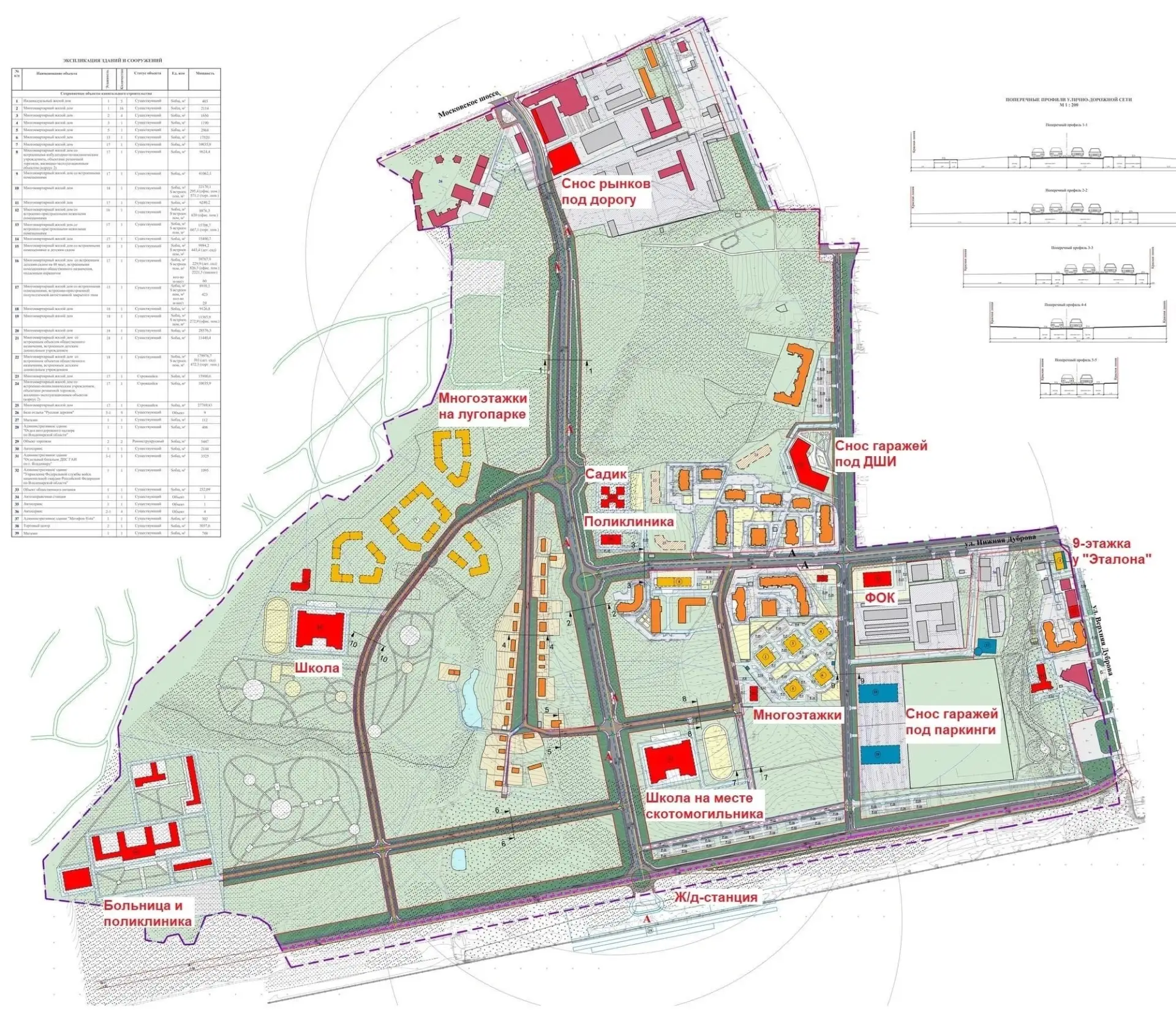 Также под снос могут попасть гаражные кооперативы «Вышка» и «Вышка-2», а рядом с ЖК «Панорама» и «Эталоном» хотят построить дополнительные многоэтажки. По мнению авторов проекта, значительная часть зелёной зоны и места отдыха в парке может исчезнуть.