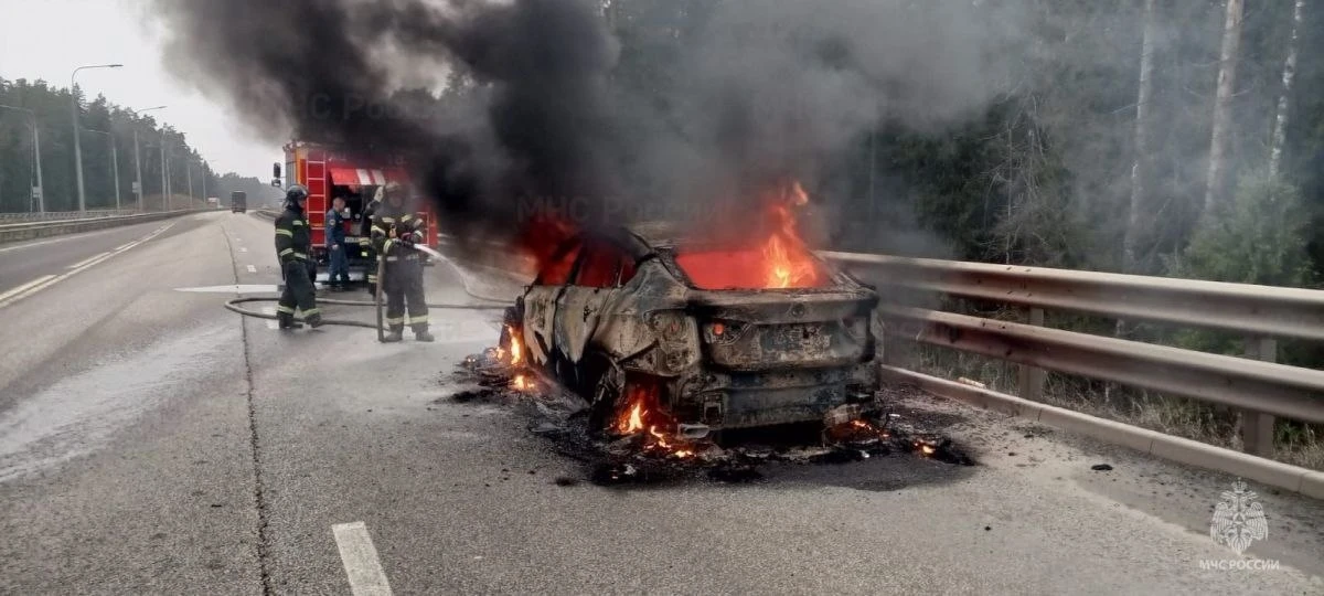 Сегодня утром на федеральной трассе М-7 в Вязниковском районе произошло резонансное ЧП. Легковой автомобиль был полностью уничтожен огнем.