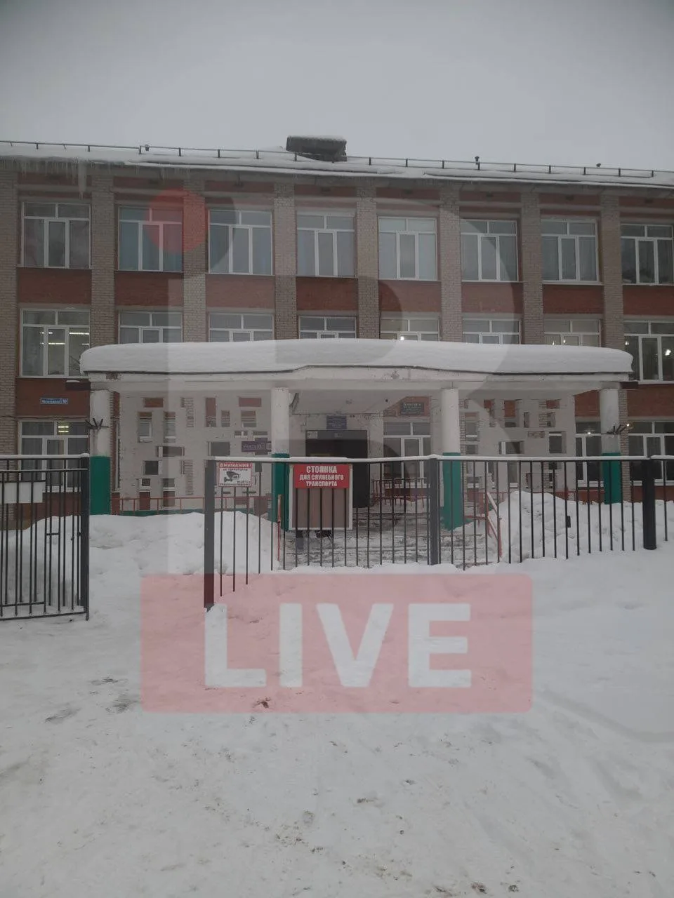 В мкр. Оргтруд в школе 47 на крыше крыльца толстый слой снега, который не убирают. Запасный выход обвалился. Всё это создаёт опасность для учащихся.