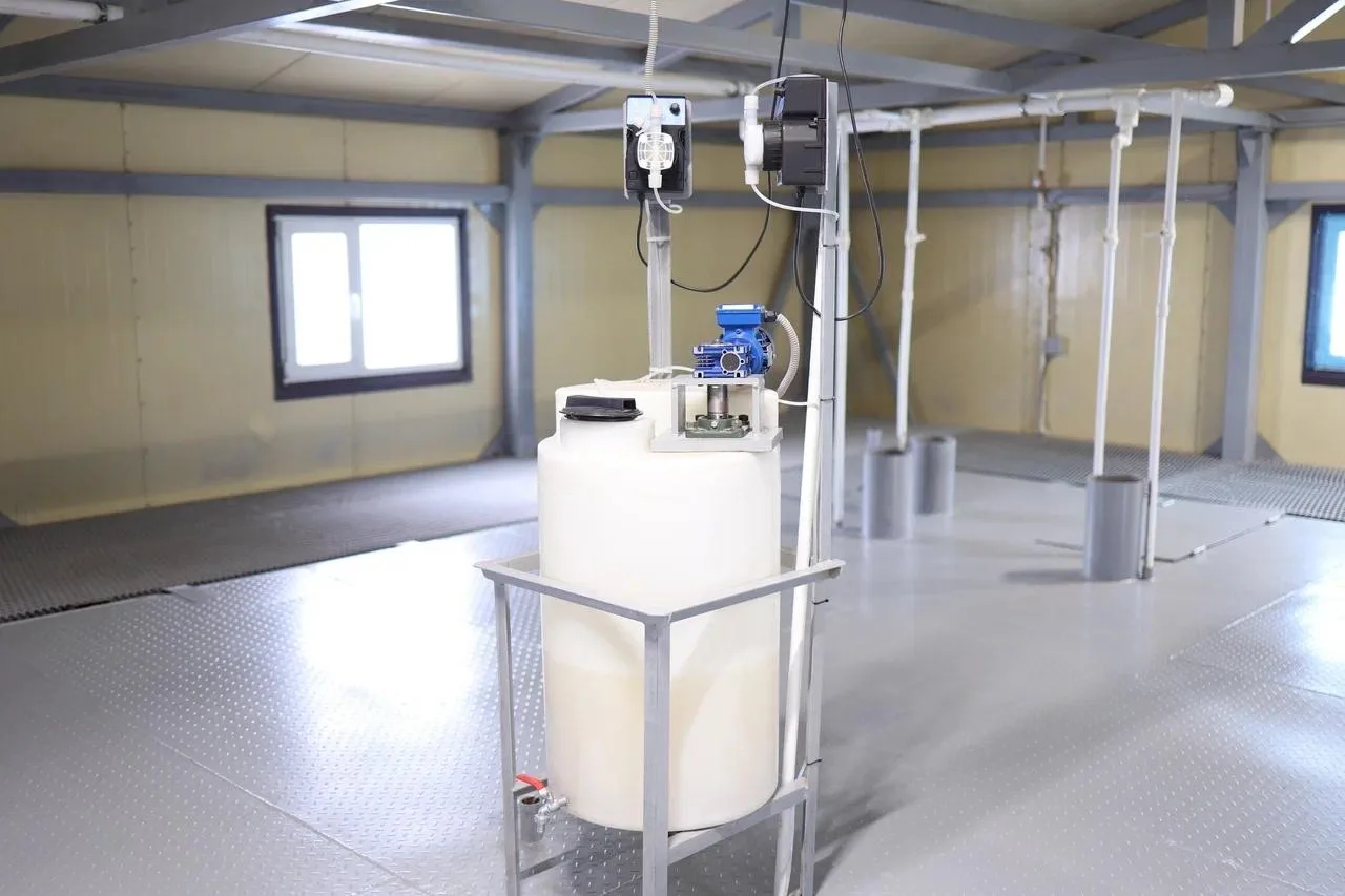 ▶️Оборудование размещено в модульном здании из быстровозводимых конструкций. Для чистой воды установлены два стальных резервуара объёмом по 100 кубических метров каждый. Система работает в автоматическом режиме и проста в обслуживании.