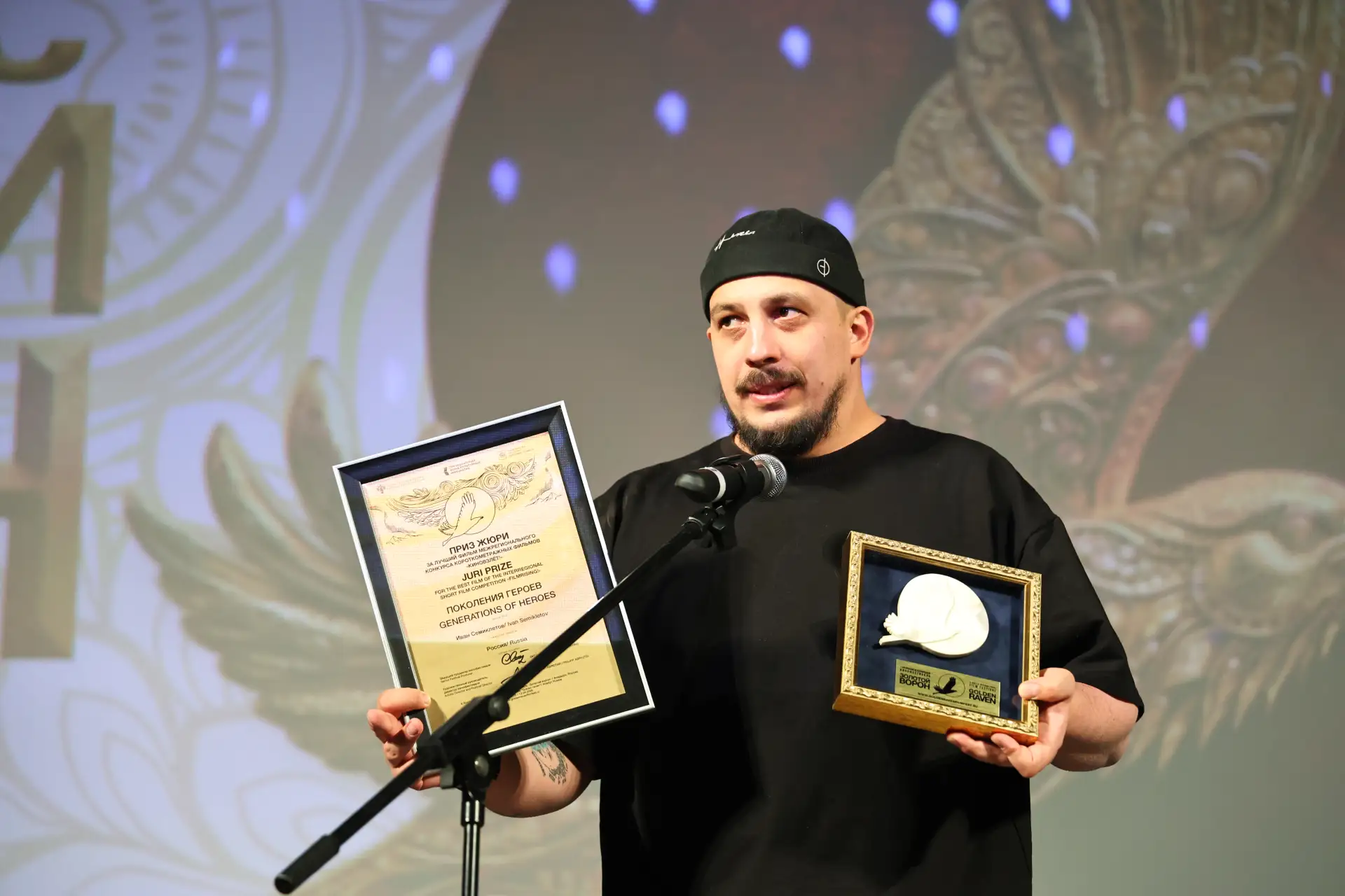 Особенно приятно, что в конкурсе короткометражных фильмов «Киновзлёт!» победила работа нашего земляка, известного журналиста Ивана Семиклетова. Его фильм «Поколение героев» снят во время поездки бойцов СВО в село Уэлькаль, где они почтили память лётчиков Великой Отечественной войны.