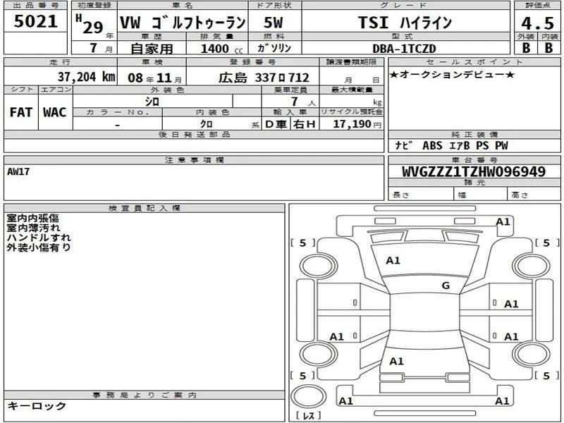 ✅ Volkswagen Golf Touran, 2017 год выпуска;