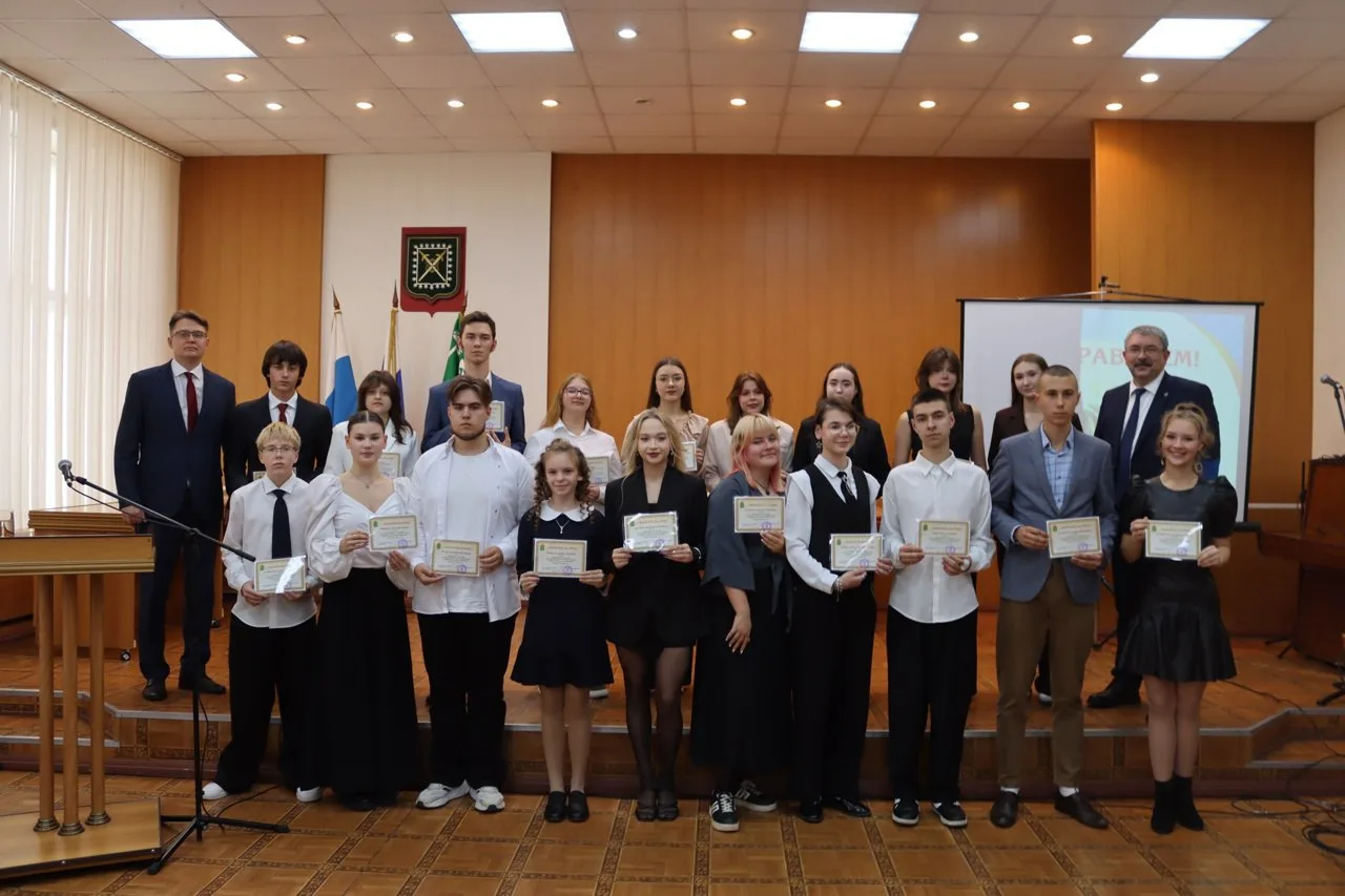 В администрации Лесного состоялась церемония чествования школьников, добившихся высоких достижений в учебно-исследовательской, творческой и спортивной деятельности.