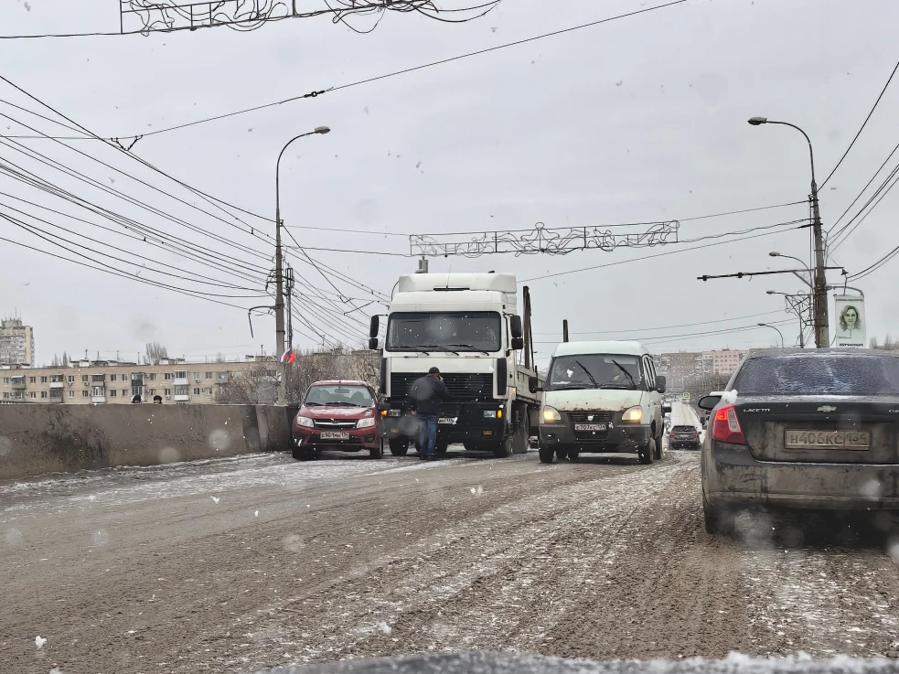 Красноармейский район все стоит через мост . Фуры как ехали так и продолжают ехать . Опять авария . Машины в 6 рядов . Трамваи не едут стоят . Когда все это закончится ? Почему никто не контролируют . Мост в критичным состоянии .