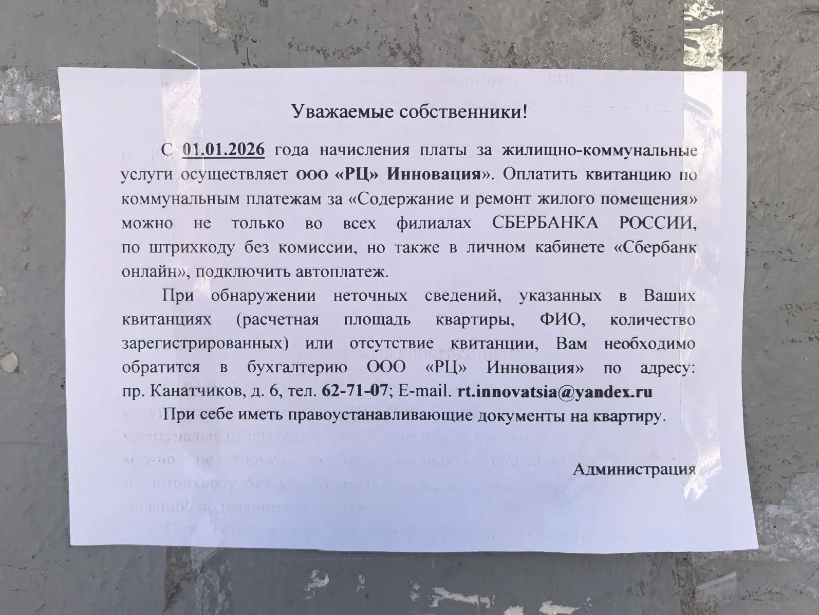 Соседи, с января наши платежки печатает какая-то контора ООО «РЦ» Инновация». Деньги платим им, а дом должен ремонтировать УК.