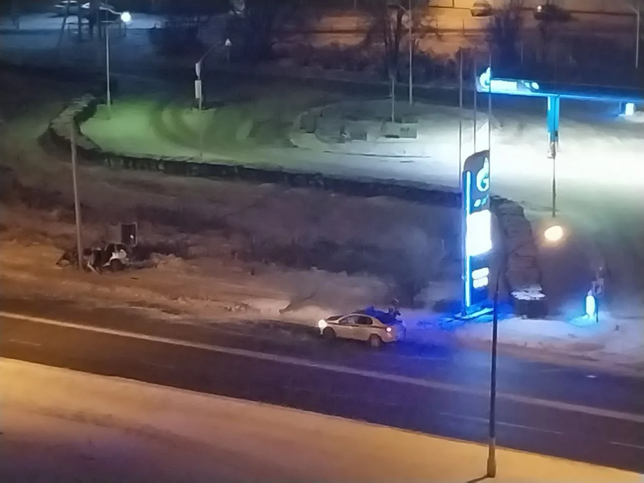 🚑 Напротив «Добростроя» работают спасатели и медики. ВАЗ протаранил световую опору.