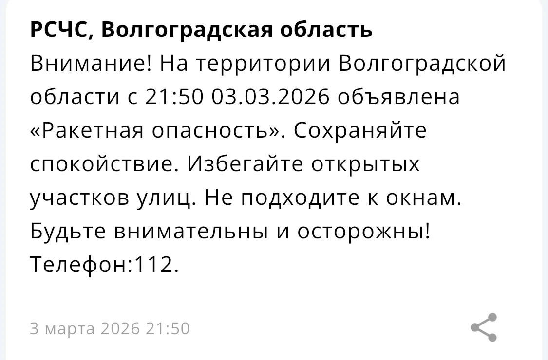 ❗️ Ракетную опасность объявили в Волгоградской области.
