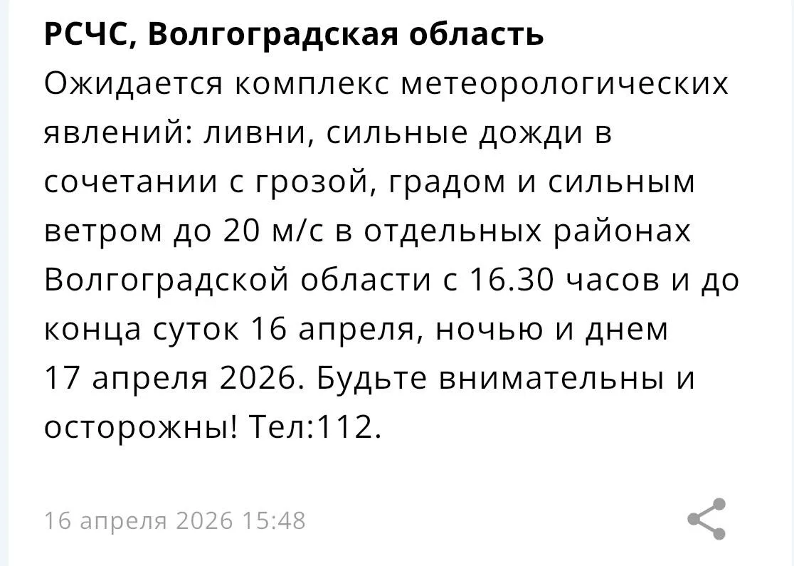 Штормовое предупреждение объявили в Волгоградской области.