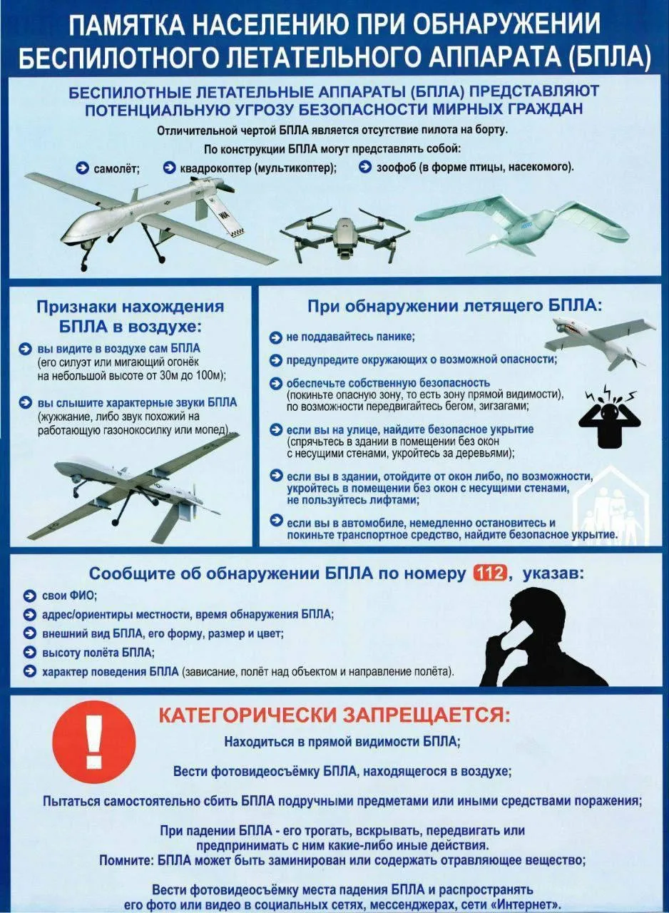 ❗️ Напоминаем, снимать и публиковать кадры БПЛА, обломков, работы ПВО, повреждений — запрещено.