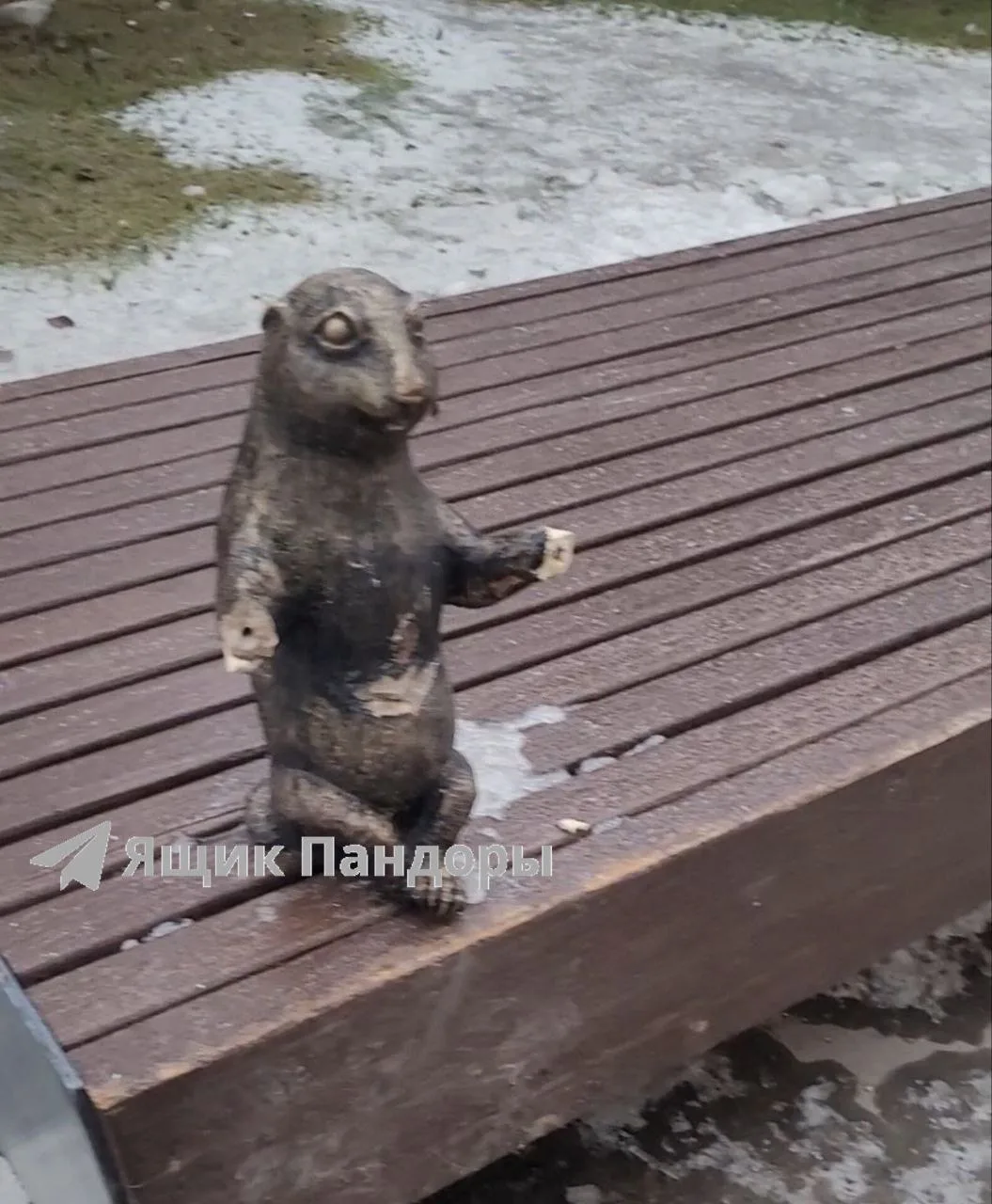 Скульптуру установили только 1 января — не простояла и двух недель. Не дают милые зверьки покоя вандалам.