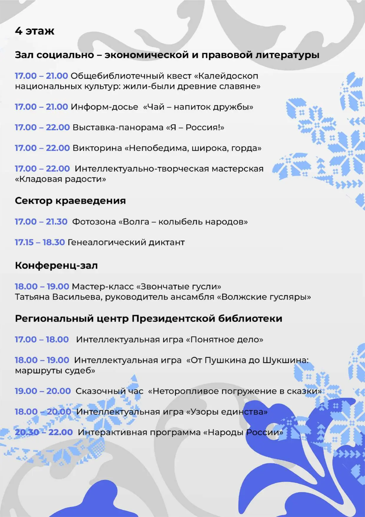 18:00 — этнографический квиз «Единый маршрут».