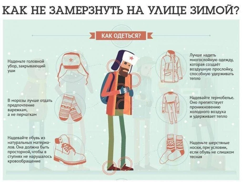 Ветер хоть и редкий, но буквально обжигает лицо. В ближайшие же дни температура будет ещё падать 🥶 Ловите памятку, как одеваться в морозы, чтобы избежать обморожения и переохлаждения.