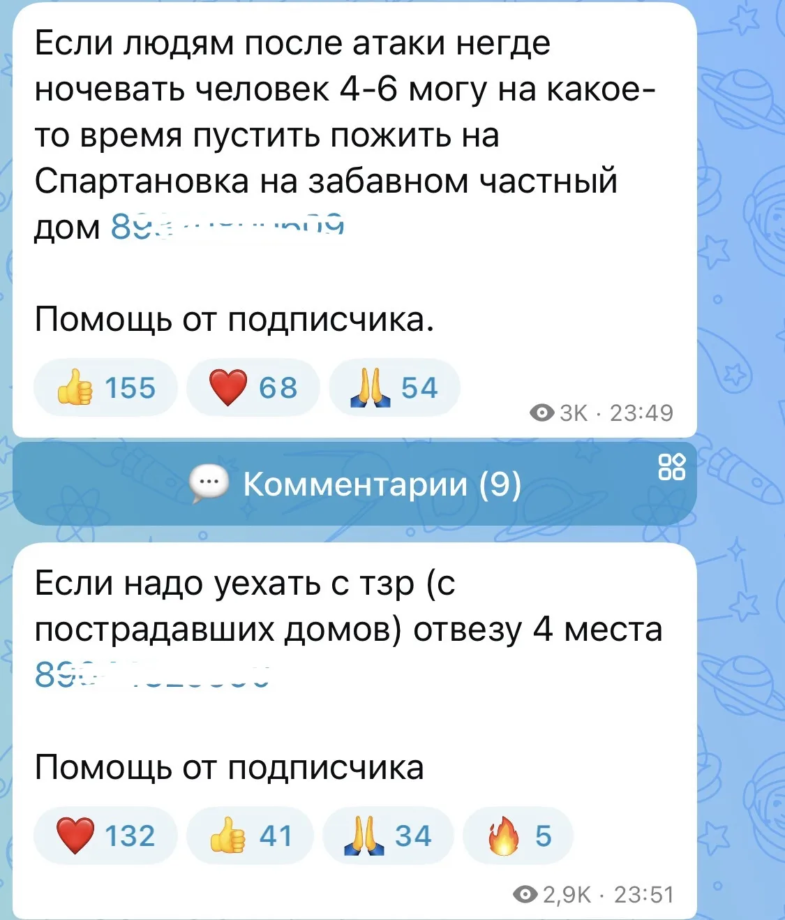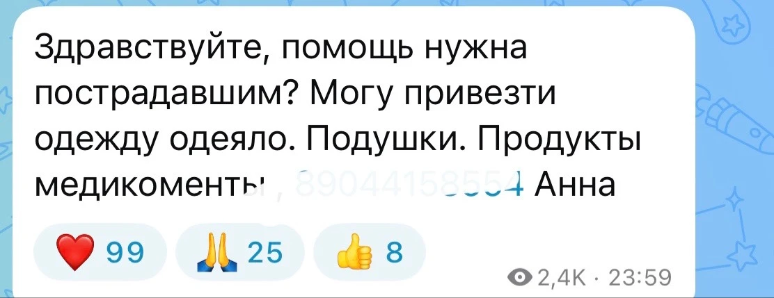 В соцсетях жители предлагают продукты, подушки, одеяла. Кто-то готов предоставить места для ночлега.
