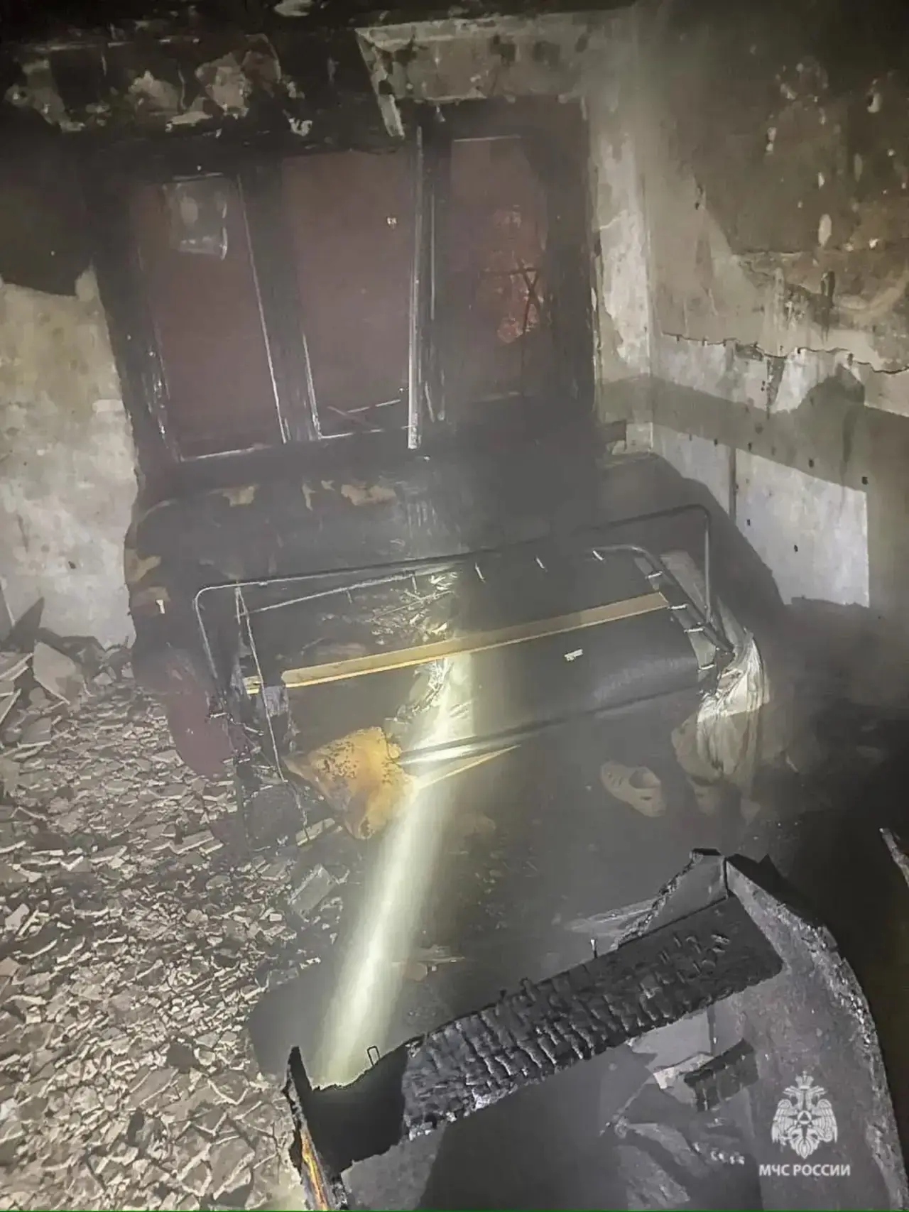 Комната загорелась из-за неосторожного курения. Пожарные вывели ребят на улицу при помощи спасустройств. Еще 30 жителей вышли сами.
