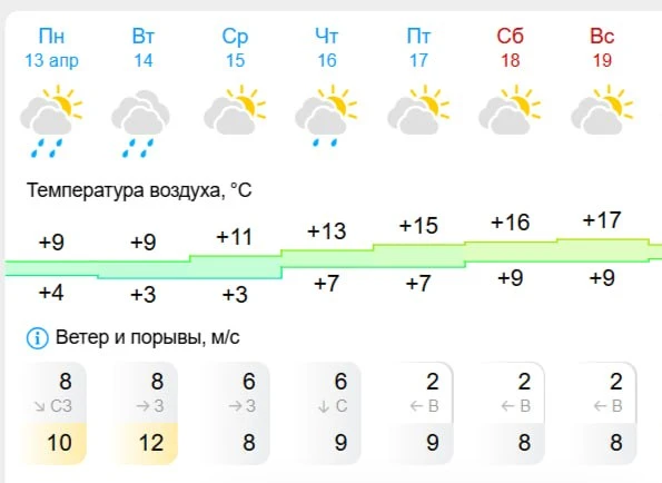 До обеда в отдельных регионах обещают грозы и туман. Завтра регион будут заливать сильные дожди, а до 15 апреля — порывы ветра местами могут достигать 15-20 м/с.