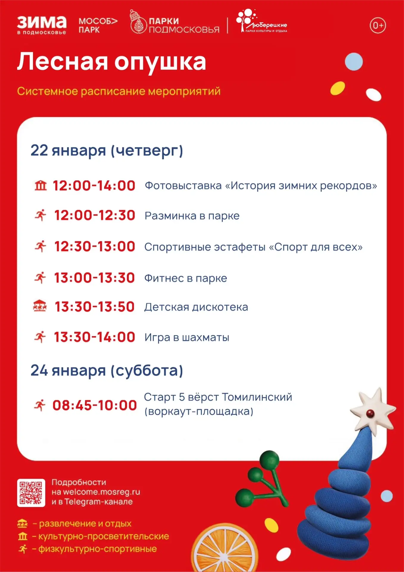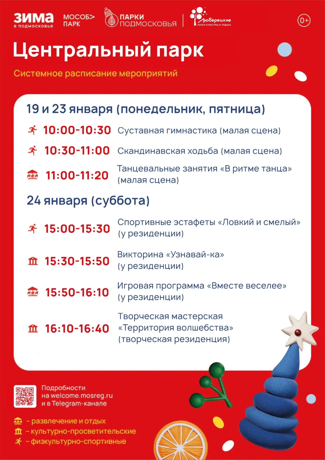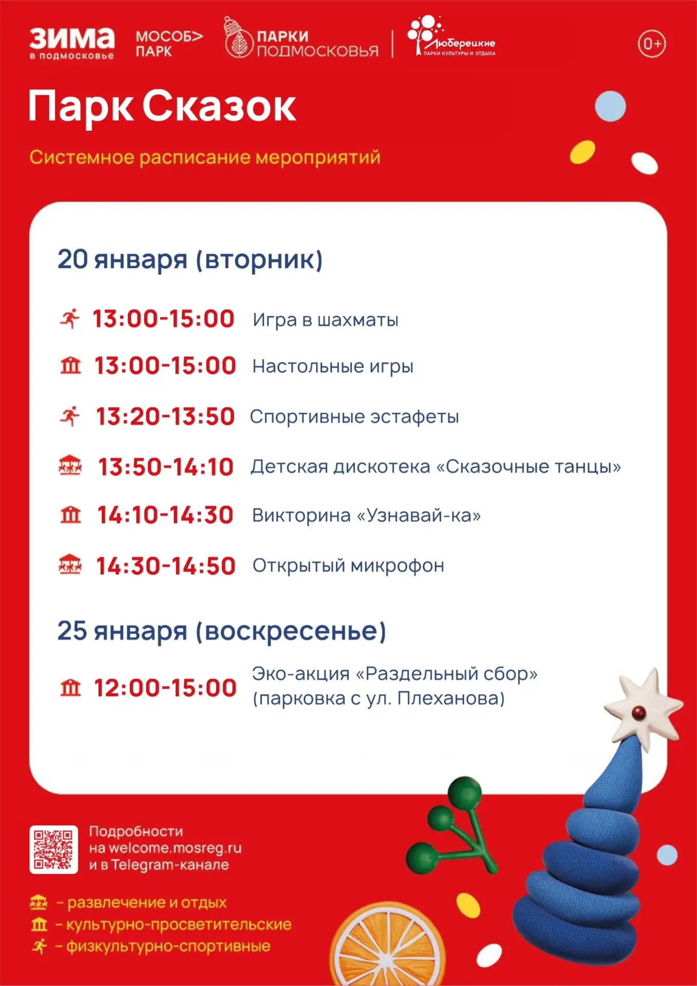 ❄️ Системное расписание мероприятий в Люберецких парках с 19 по 25 января.