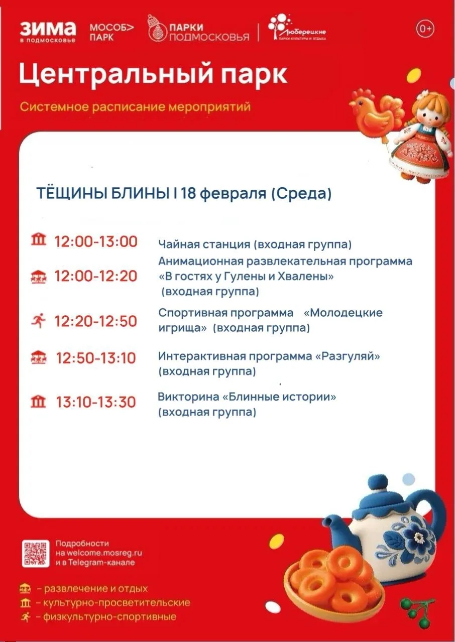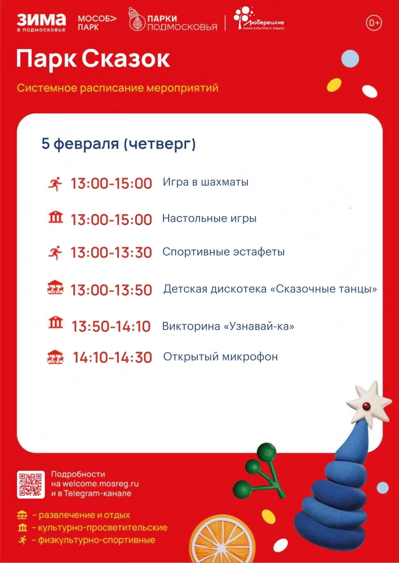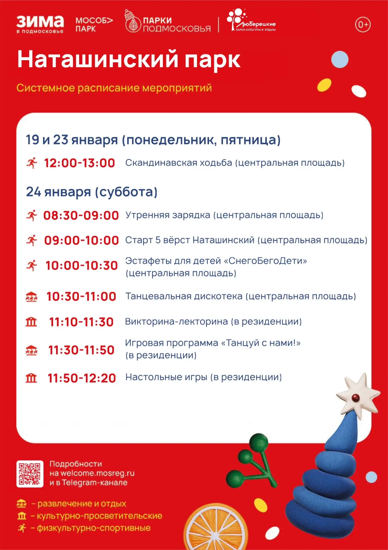❄️ Системное расписание мероприятий в Люберецких парках с 19 по 25 января.