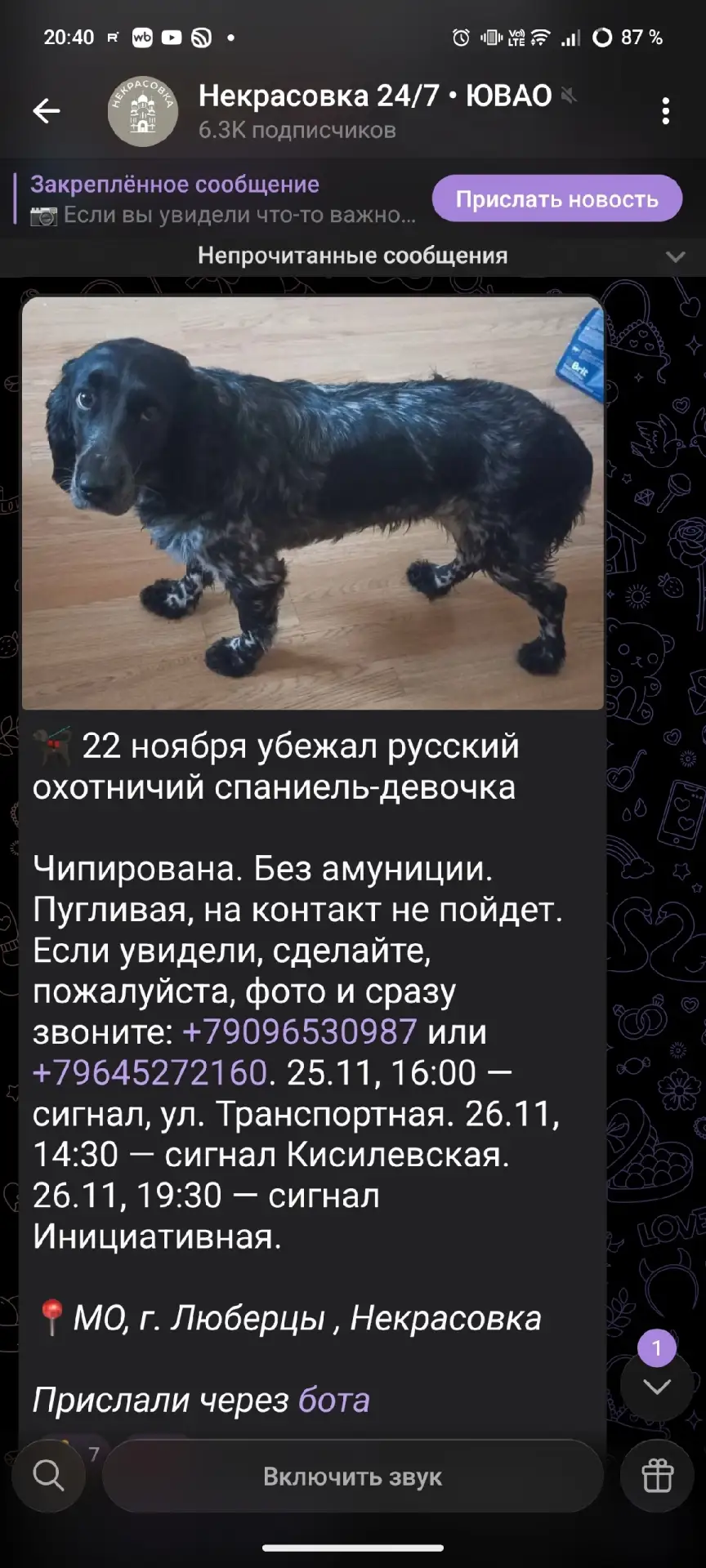 22.11.25 убежал русский охотничий спаниель-девочка.