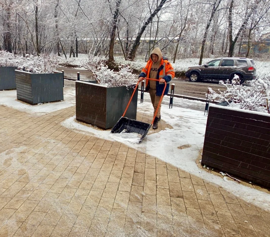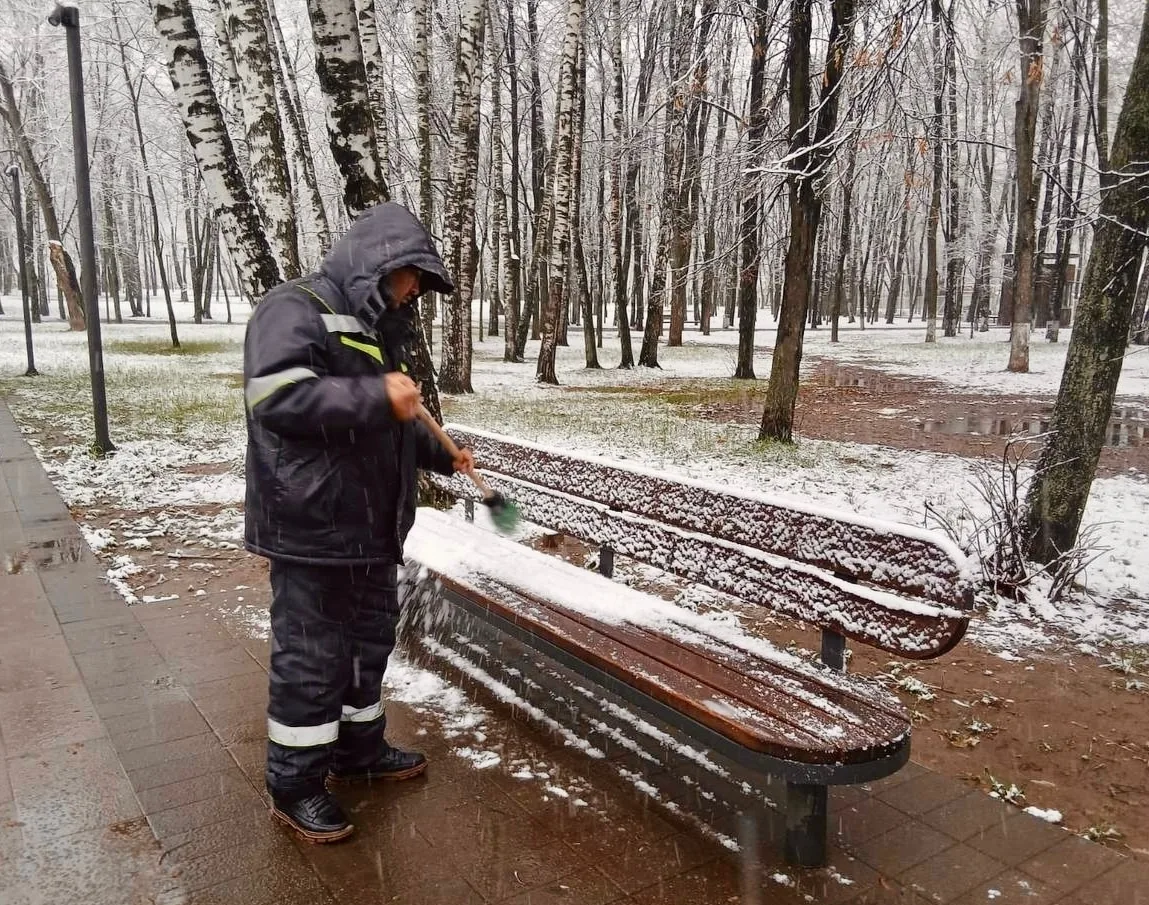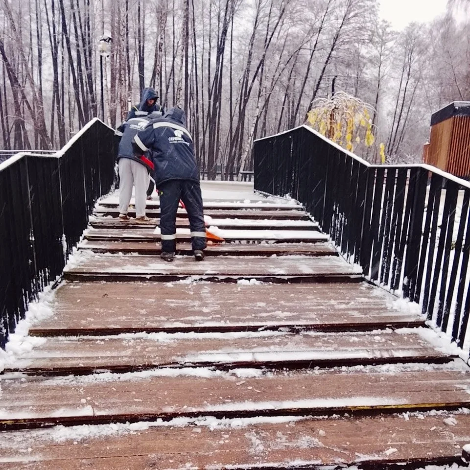 🧹 Уже рано утром специалисты вышли на парковые территории, чтобы очистить дорожки, площадки и лавочки от свежевыпавшего снега.