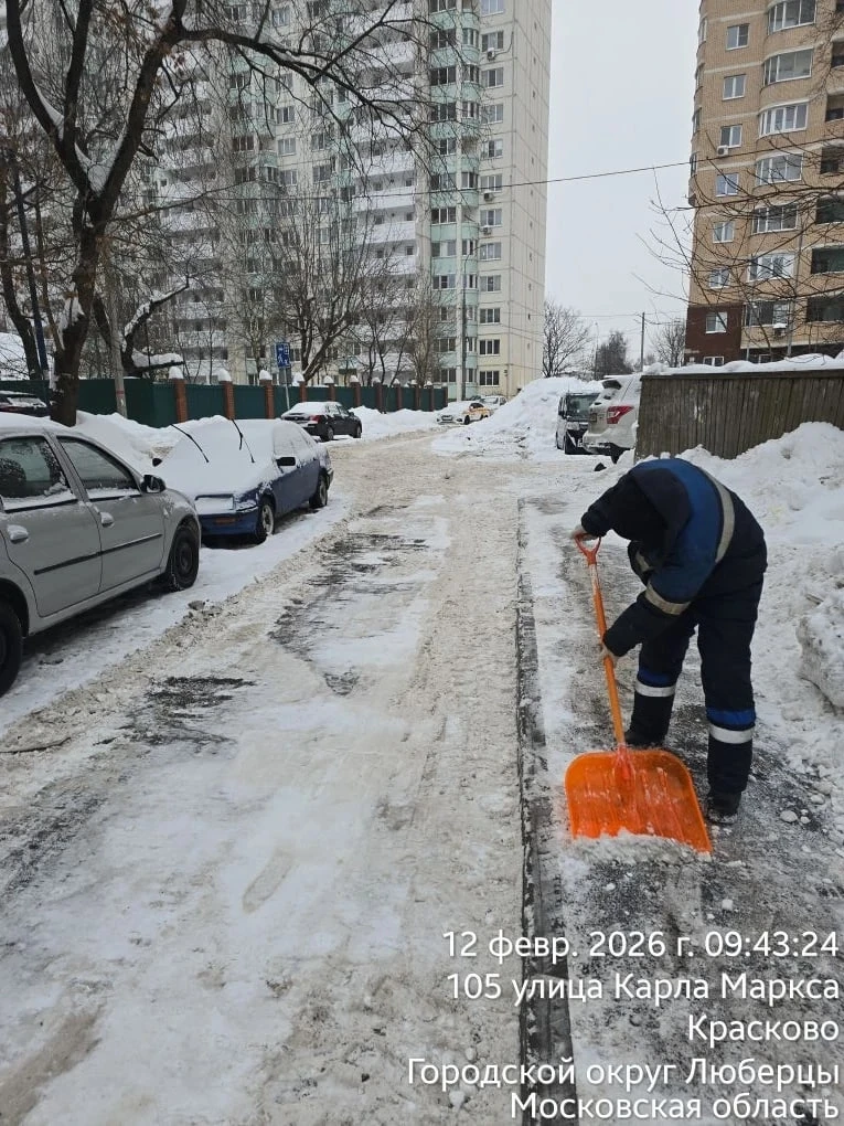 В посёлке Красково проводятся плановые работы по зимнему содержанию территорий.