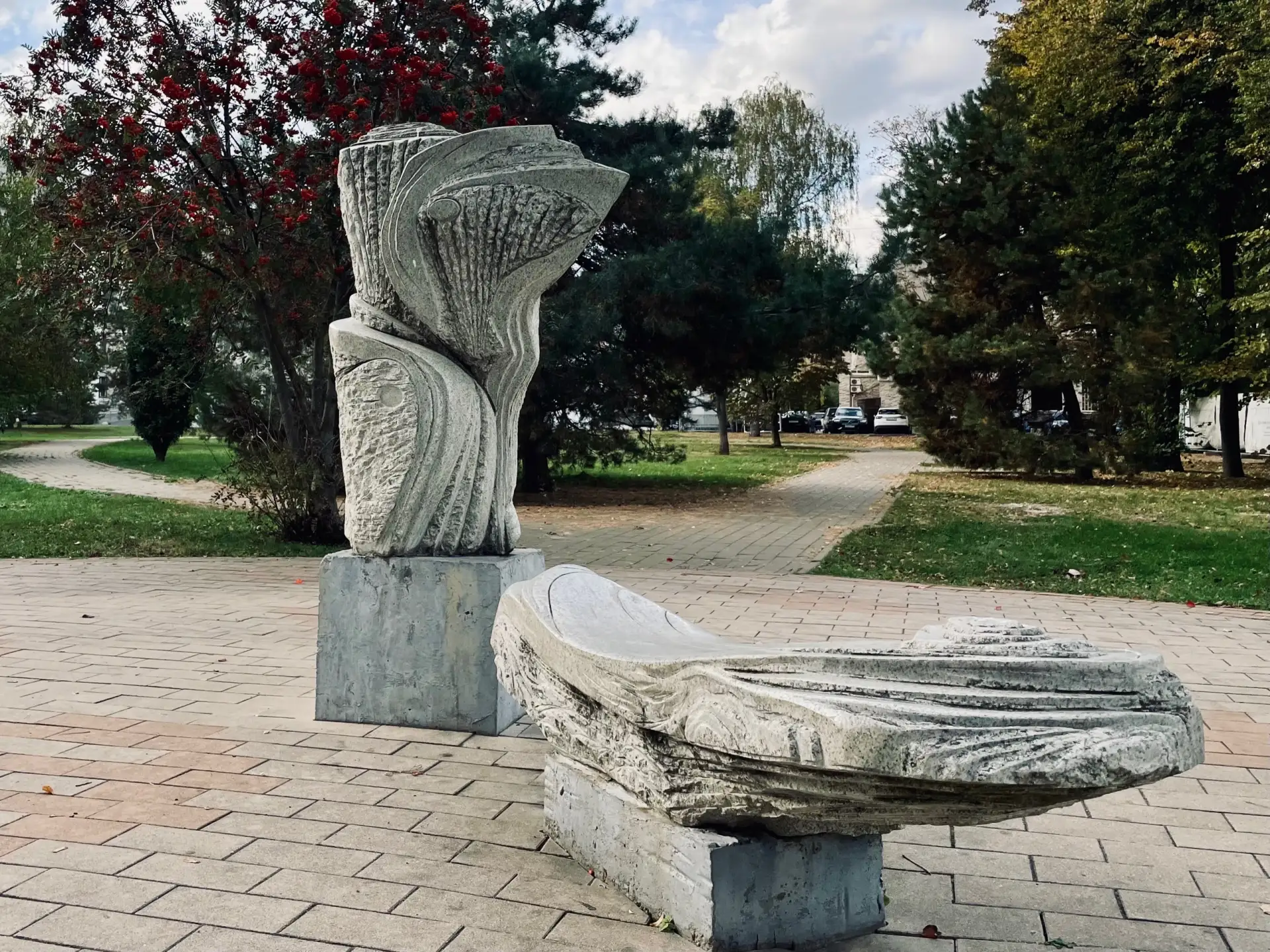 ▫️ Одна из скульптур, та самая, которая на фото, до сих пор стоит в Центральном парке, являясь художественной ценностью и самостоятельным произведением монументально-декоративного искусства.
