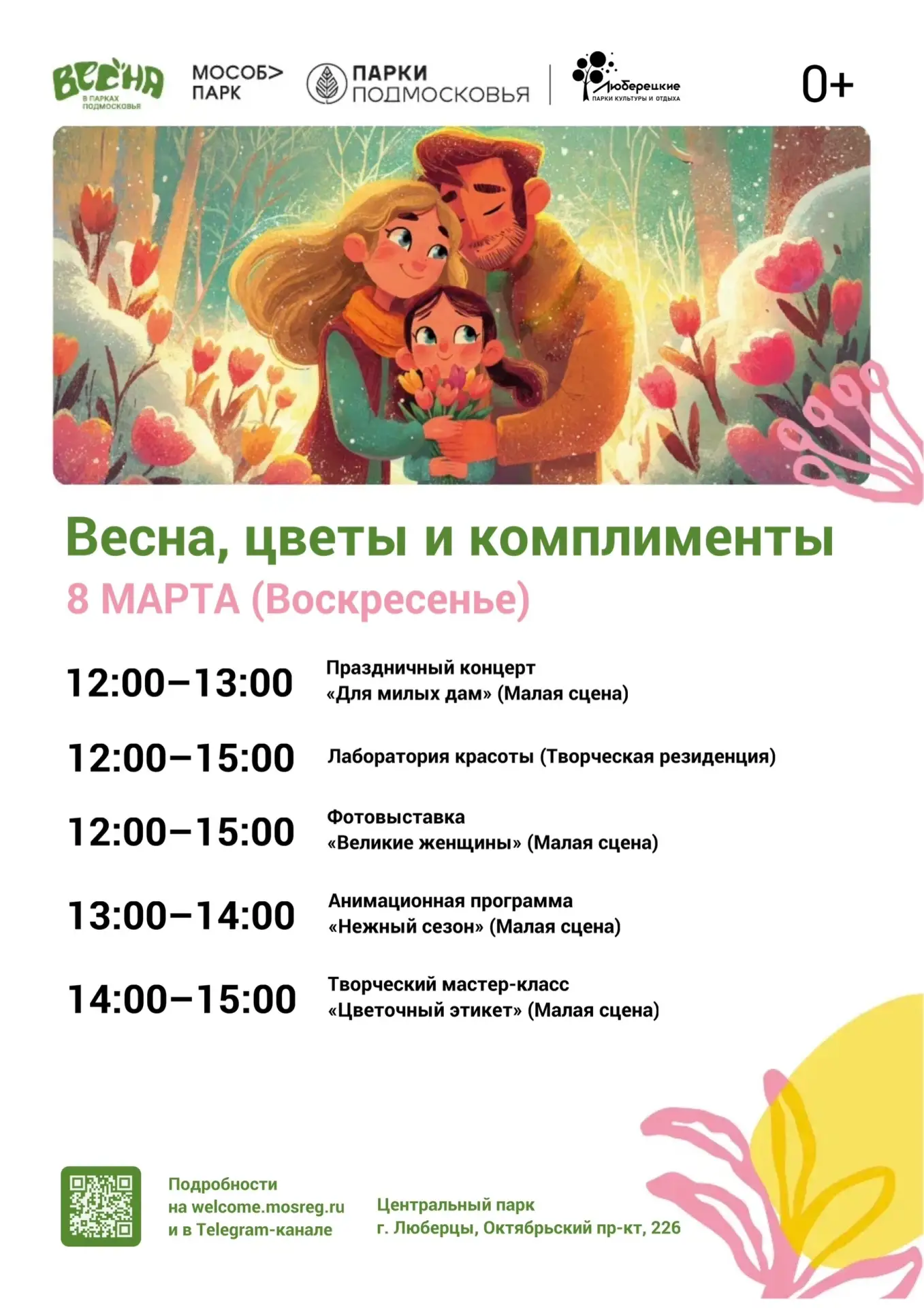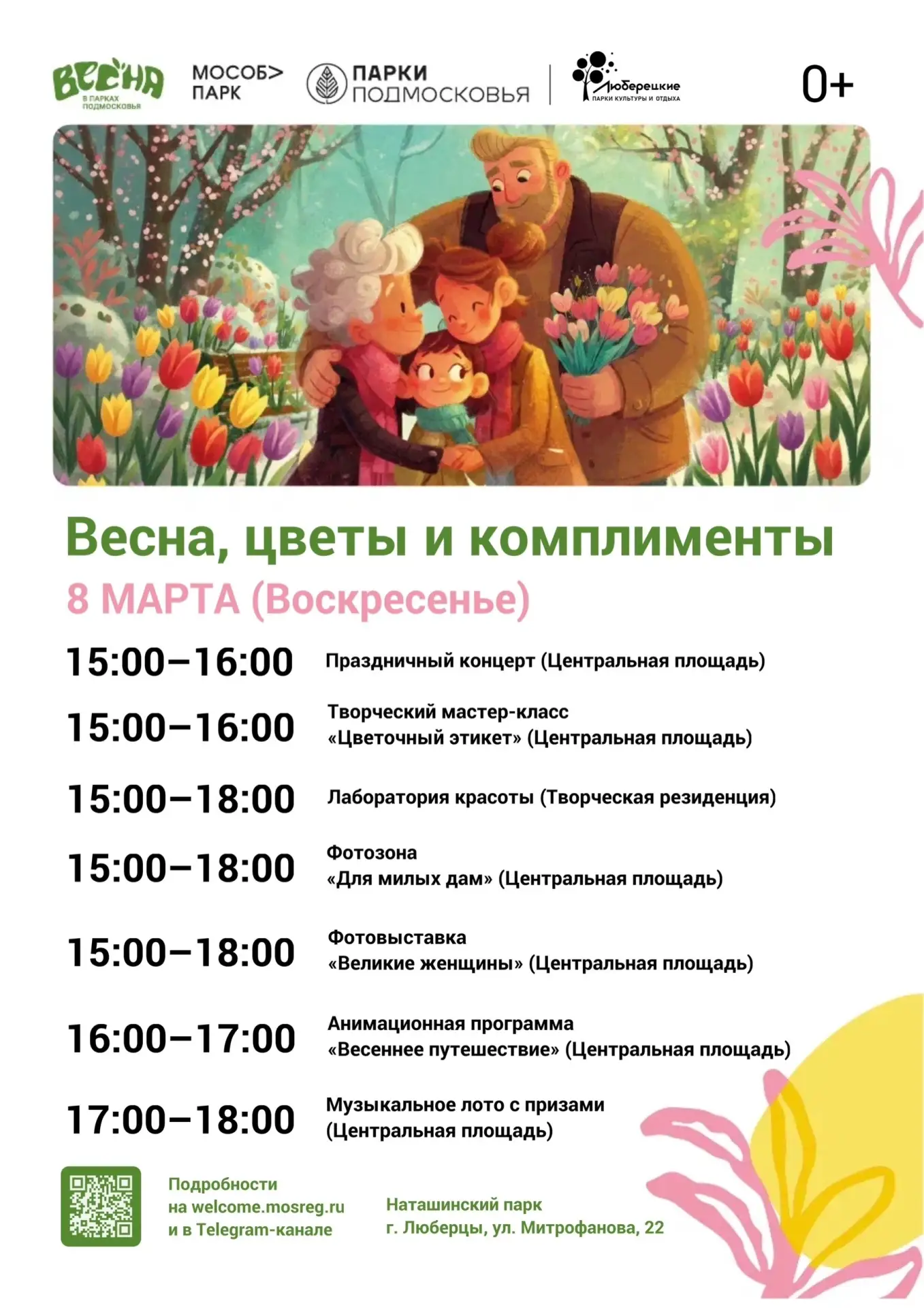 🌷 8 марта приглашаем вас и ваших близких в Люберецкие парки отпраздновать Международный женский день!