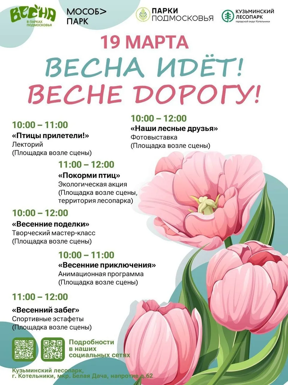 Приглашаем в Кузьминский лесопарк на мероприятие «Весна идёт! Весне дорогу!»🌸