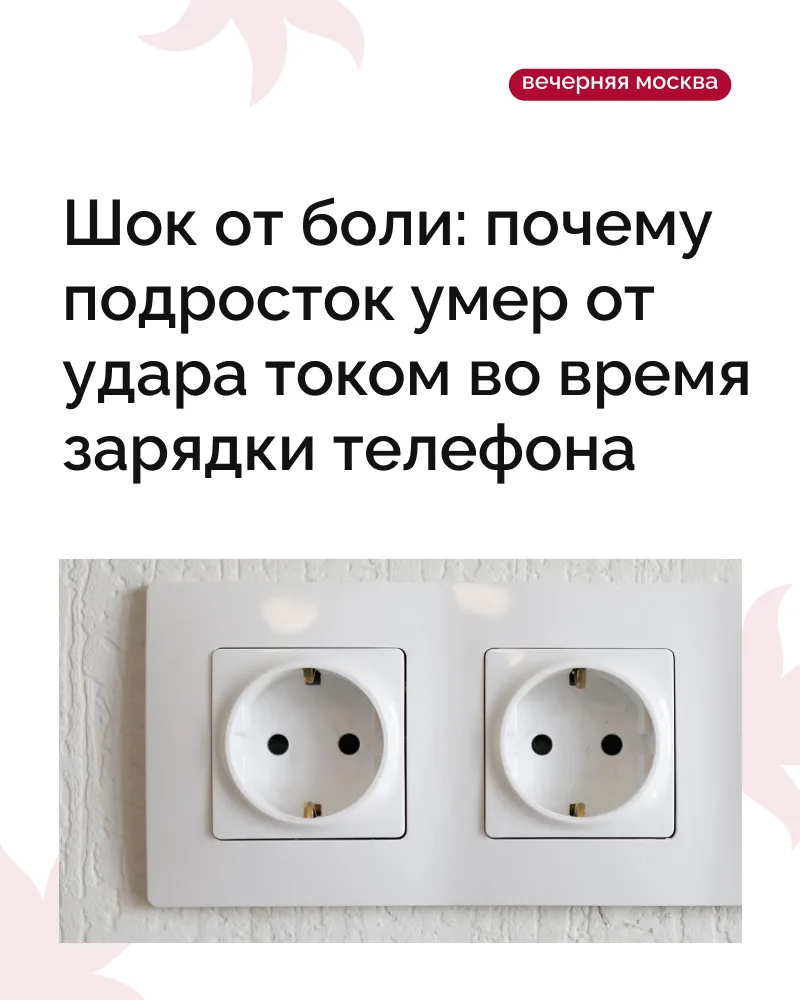 💔 Электричество, проходя через организм, может нарушать работу сердца и дыхания, а также вызывать болевой шок, который способен привести к смерти. Эксперт предположил, что причиной трагедии могло стать некачественная зарядка с нарушенной изоляцией. В сертифицированных устройствах предусмотрена изоляция, защищающая от подобного.